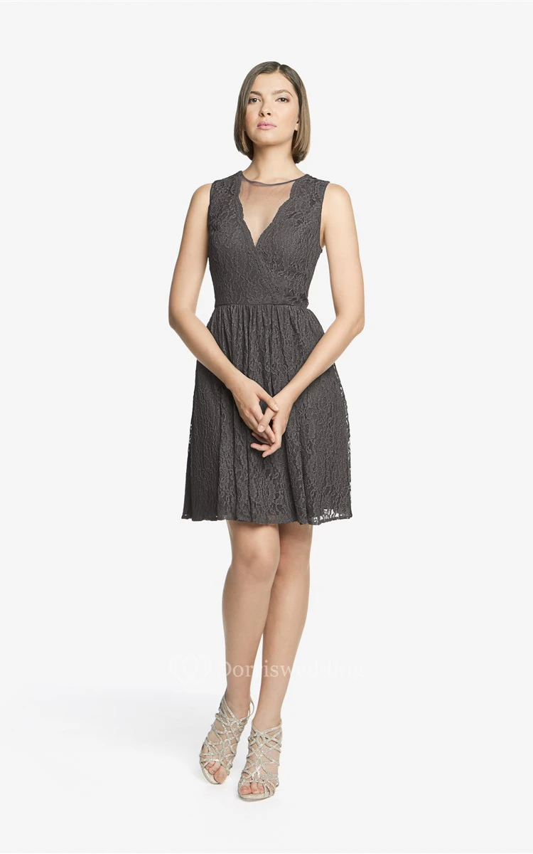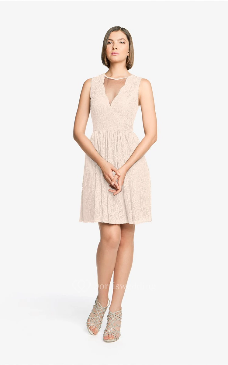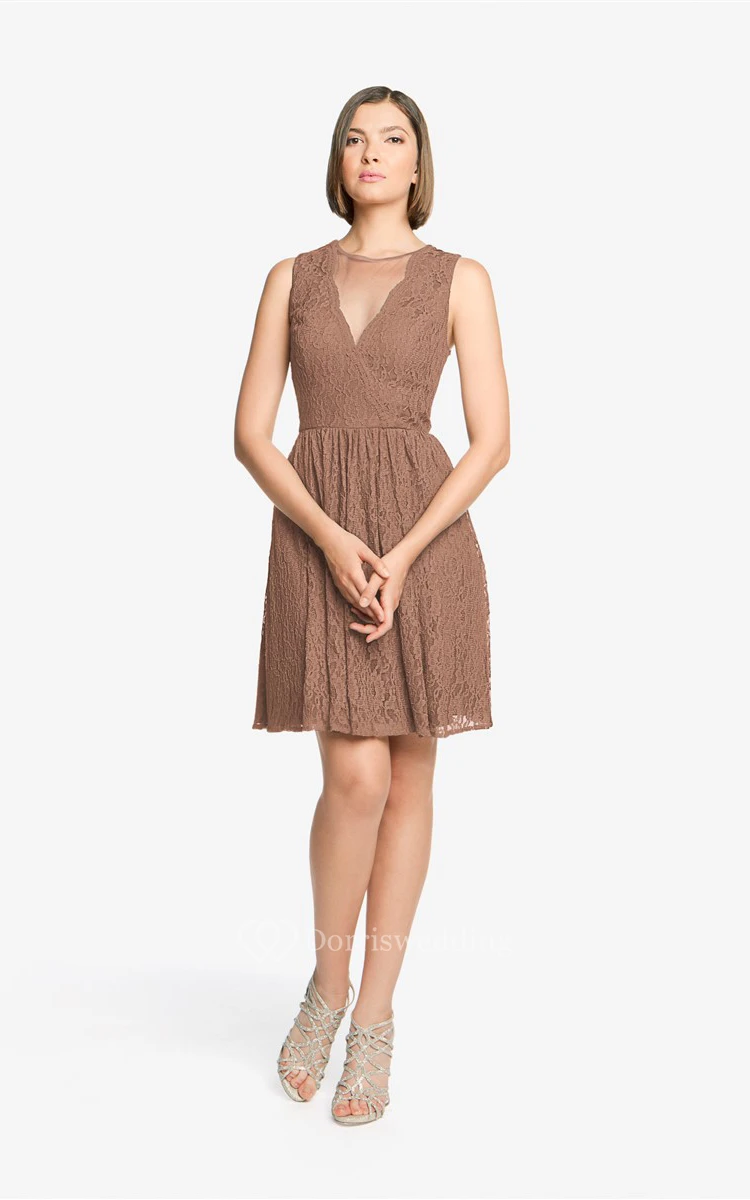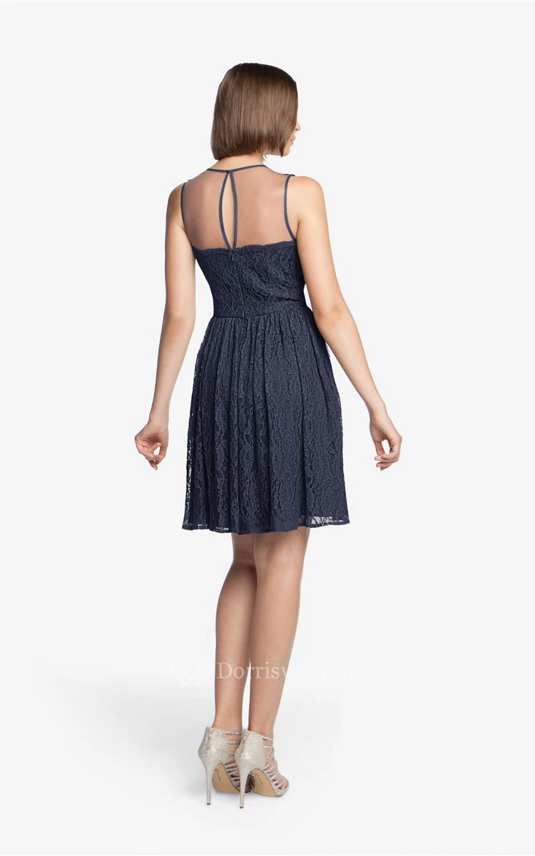 Jewel-Neck Lace Elegant Dress With Illusion Keyhole Back