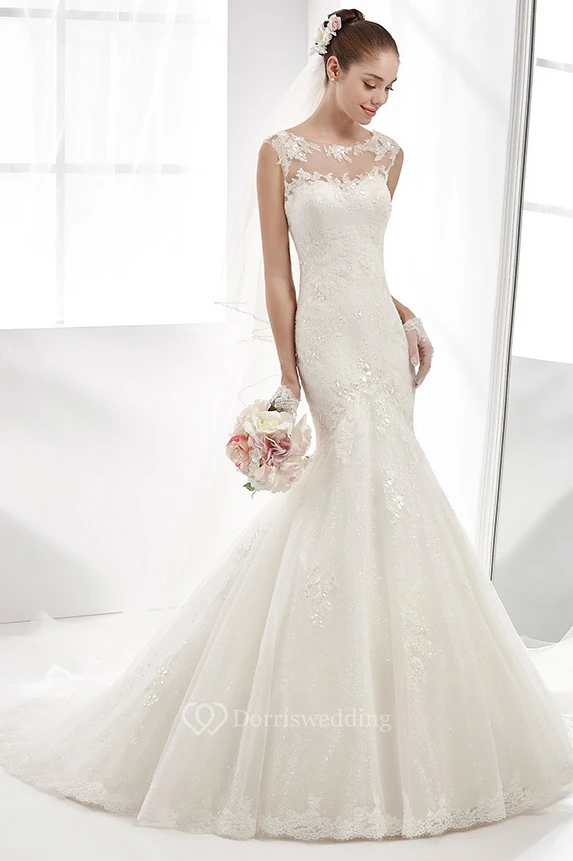 Jewel-Neck Mermaid Sheath Gown With Illusive Neckline And Back