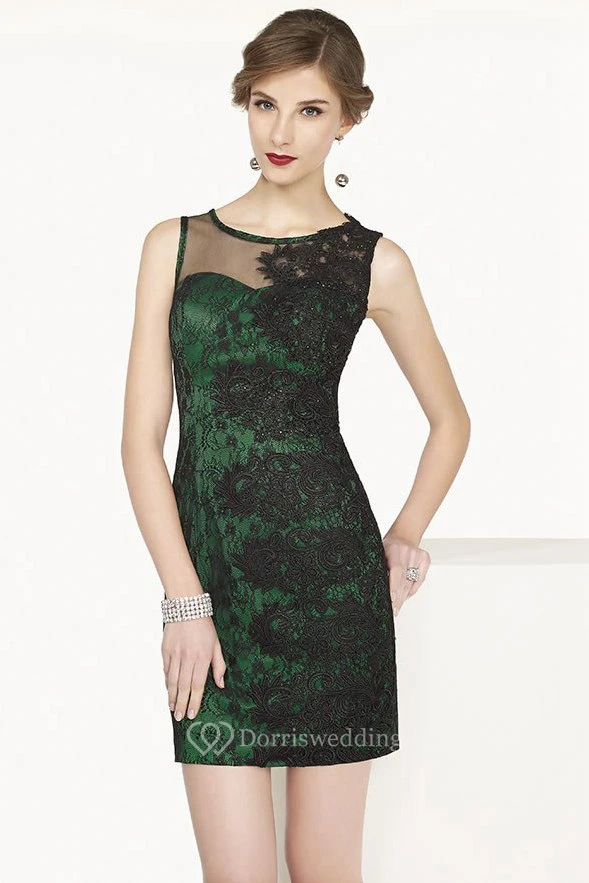 Jewel Neck Sheath Lace Short Prom Dress Illusion Style