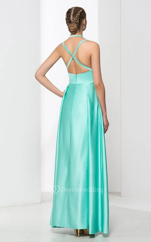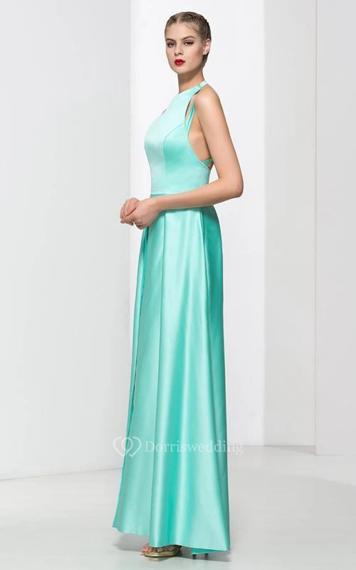 Jewel Neck Split-Front Long Prom Dress