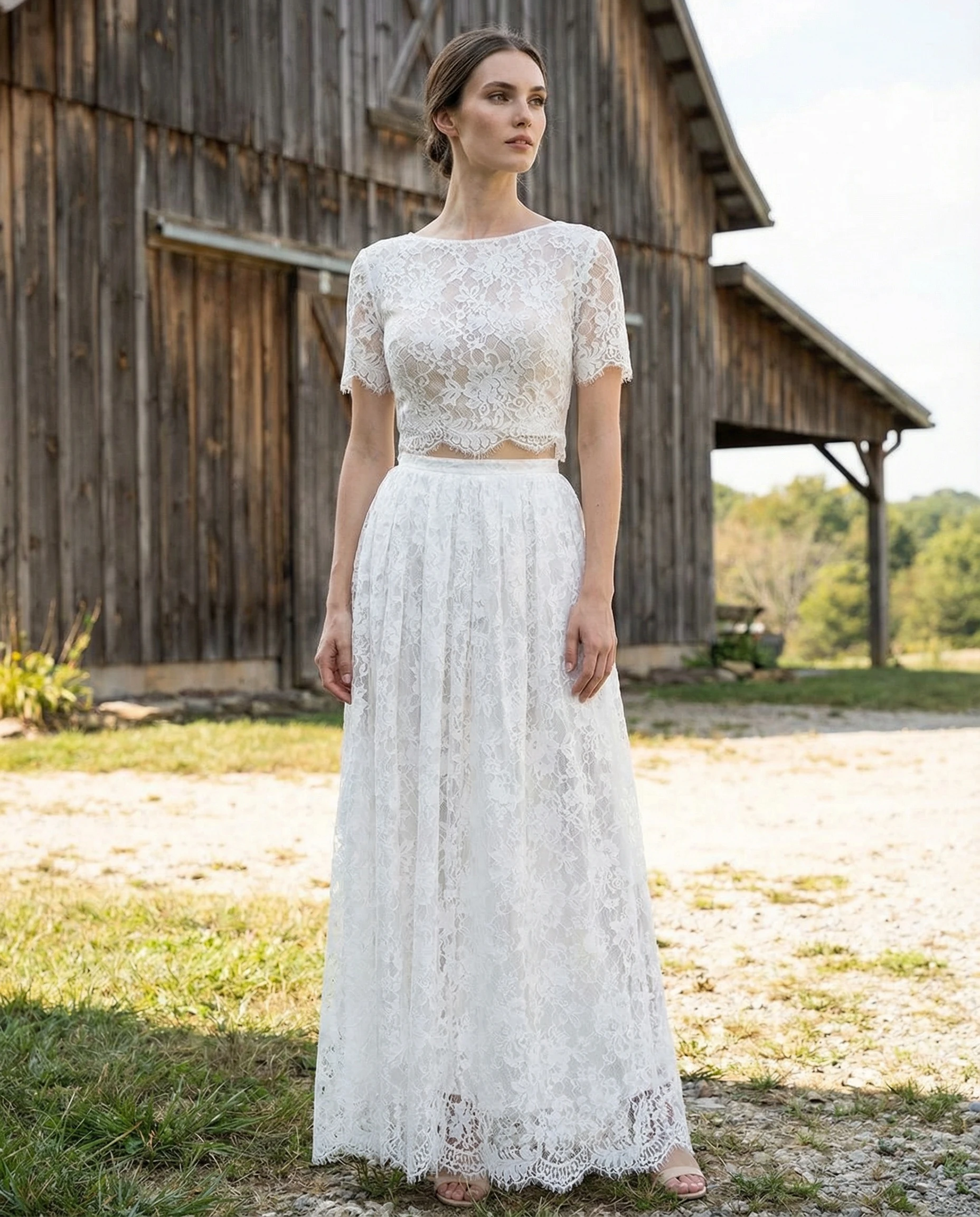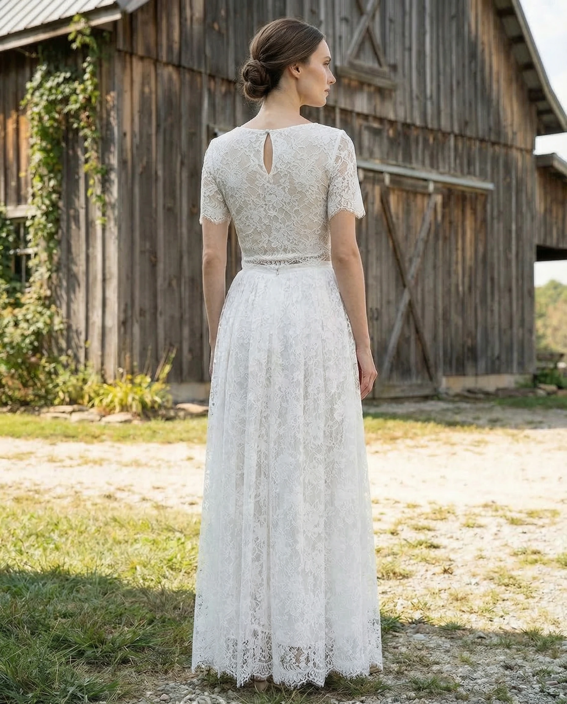 Jewel Neck T-Shirt Sleeve Lace Wedding Dress