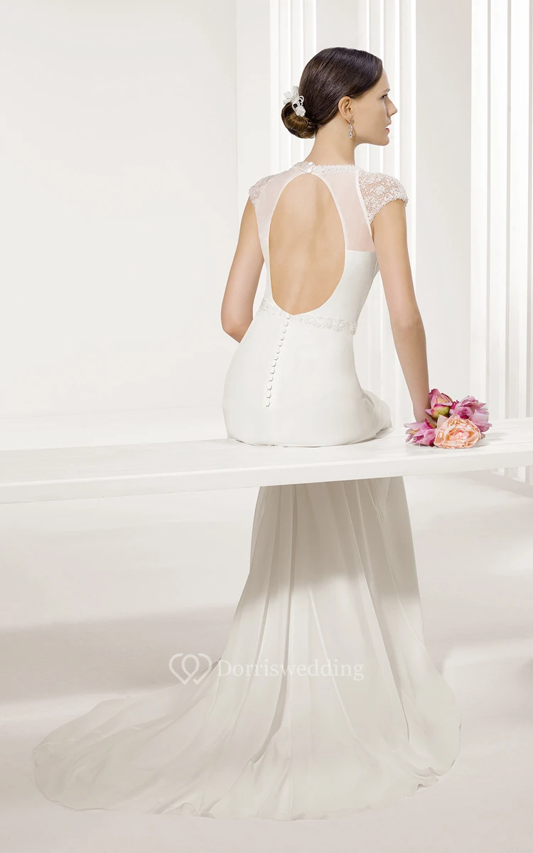 Jewel Neckline Keyhole Back Cap-Sleeved Sheath