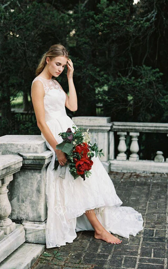 Jewel Sleeveless A-Line High-Low Short Bridal Dress With Appliques