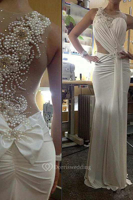 Jewel Sleeveless Ruched Mermaid Jersey Dress
