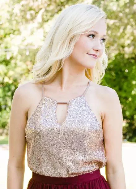 • Neckline: Jewel, Spaghetti