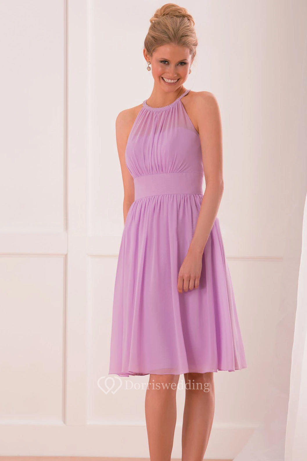 Jeweled High Neck A-Line Knee-Length Bridesmaid Dress With Pleats