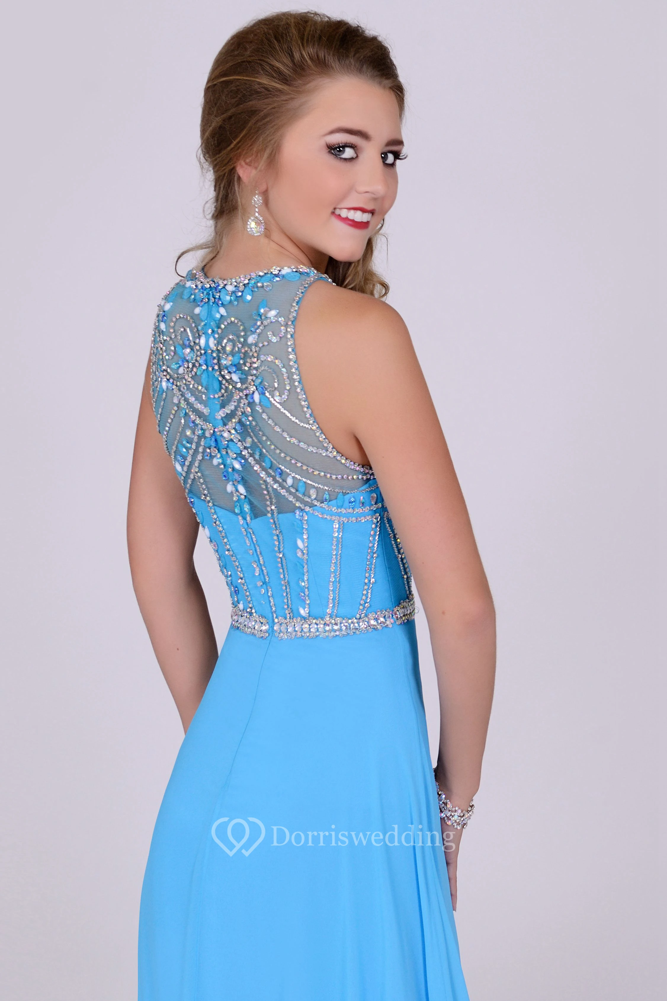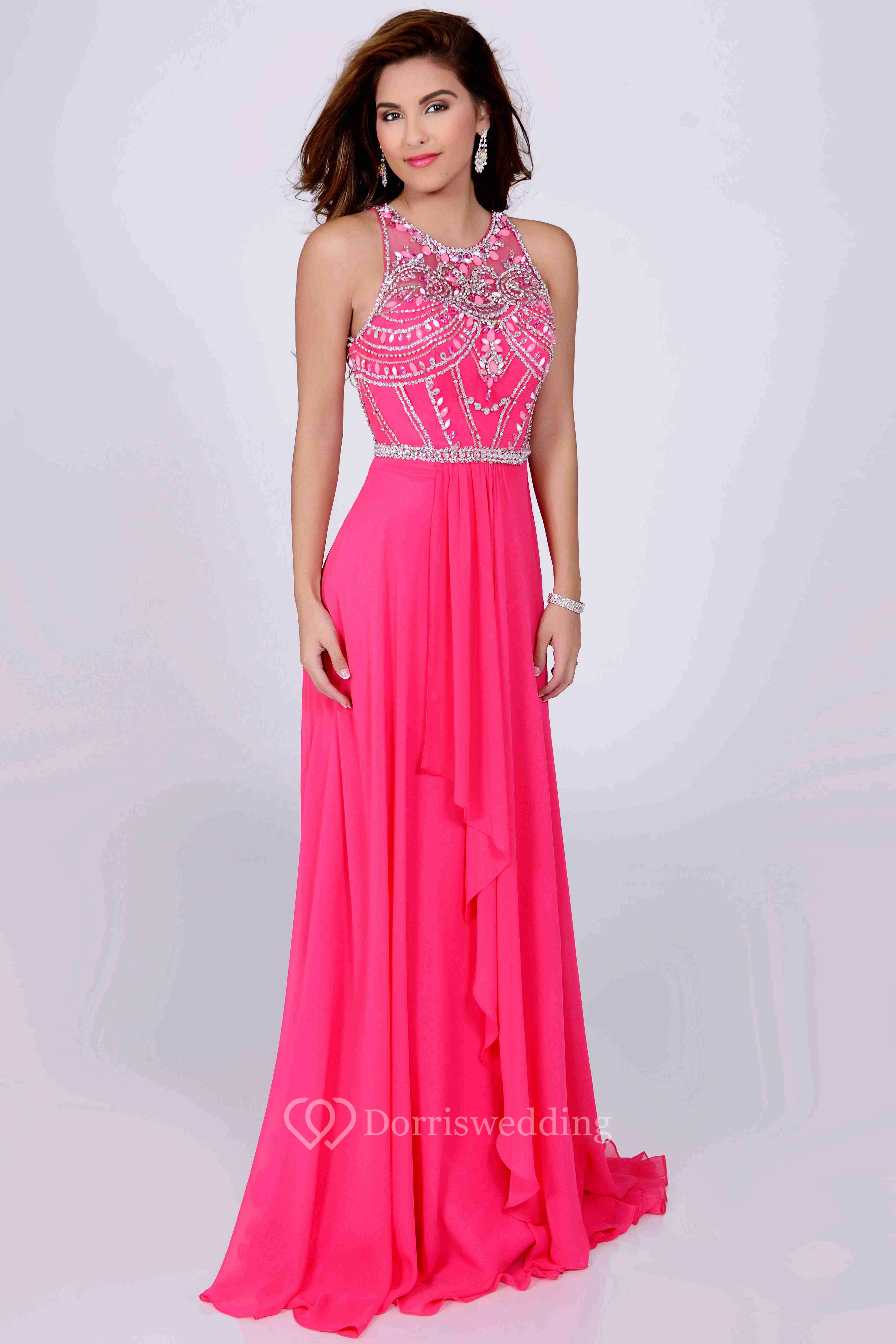Jeweled Neck Sleeveless A-Line Chiffon Prom Dress With Front Draping