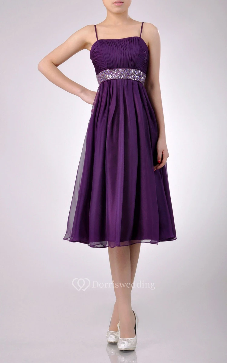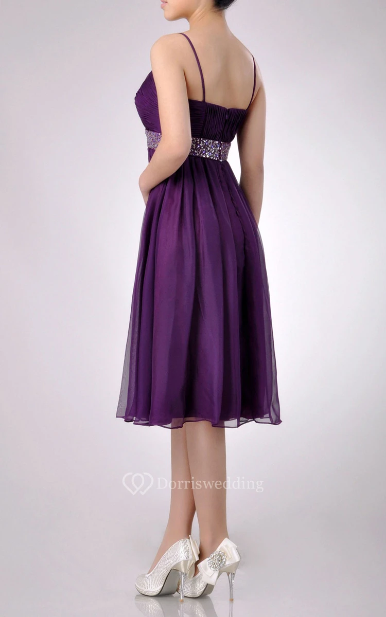 Knee-length A-line Chiffon Bridesmaid Dress With Beaded Belt and Spaghette Straps