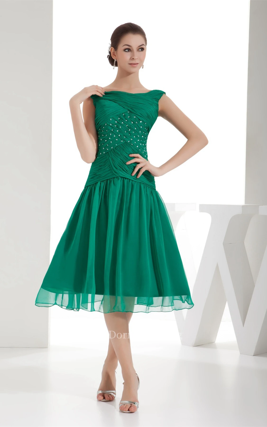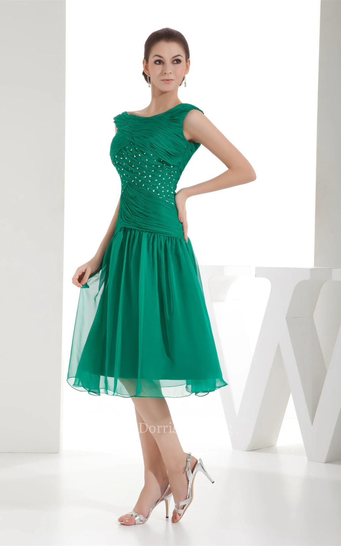 • Hemline/Train: Knee-length
