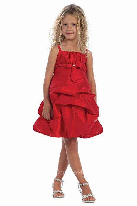 Knee-Length Beaded Ruched Lace&Taffeta Flower Girl Dress With Tiers