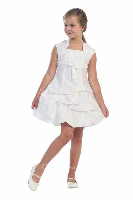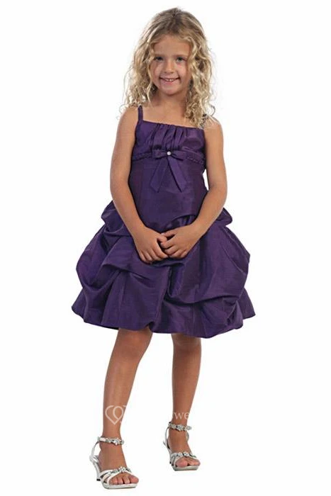 Knee-Length Beaded Ruched Lace&Taffeta Flower Girl Dress With Tiers