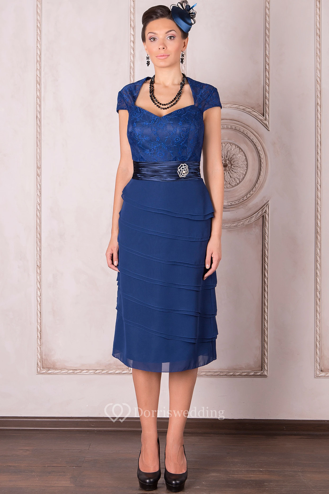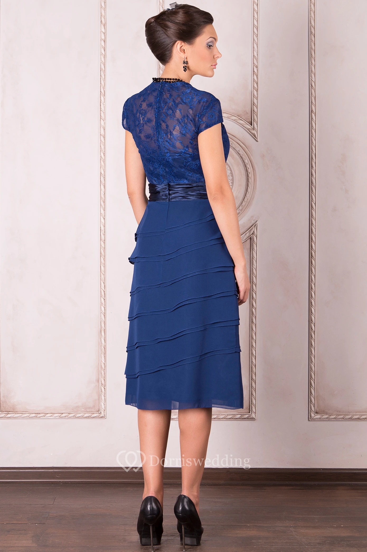 Knee-Length Cap Sleeve Square Neck Lace Chiffon Mother Of The Bride Dress