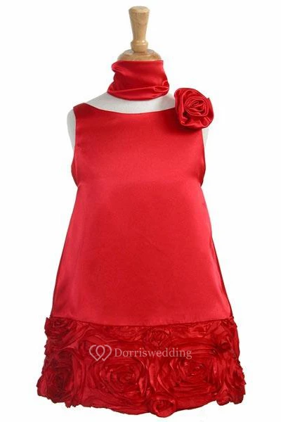 Knee-Length Cape Floral Lace&Charmeuse Flower Girl Dress With Embroidery