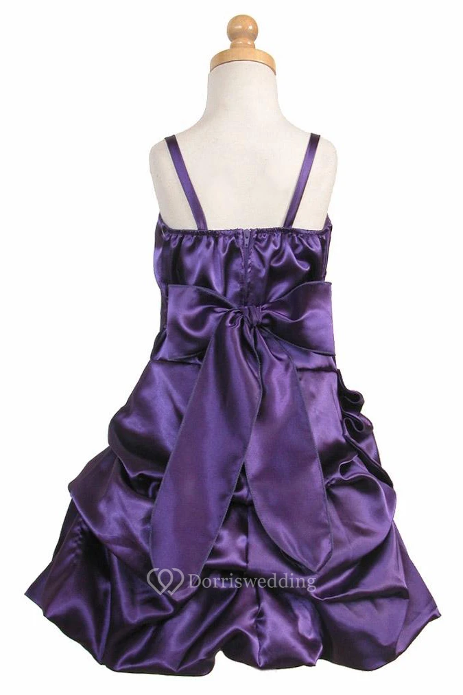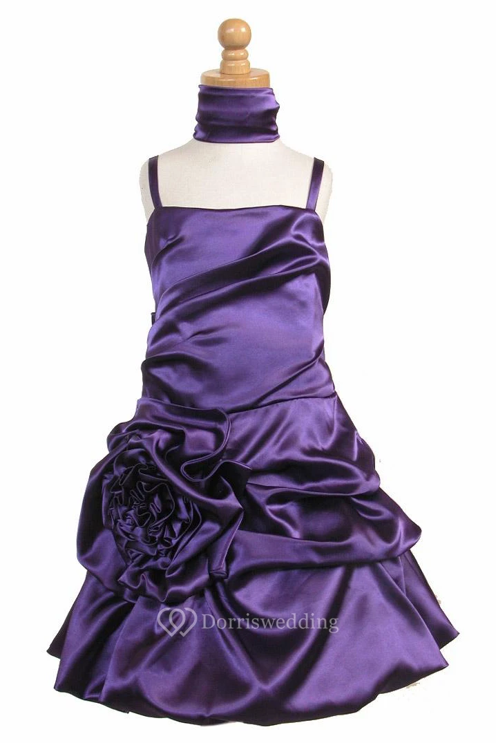 Knee-Length Cape Ruched Floral Satin Flower Girl Dress With Sash