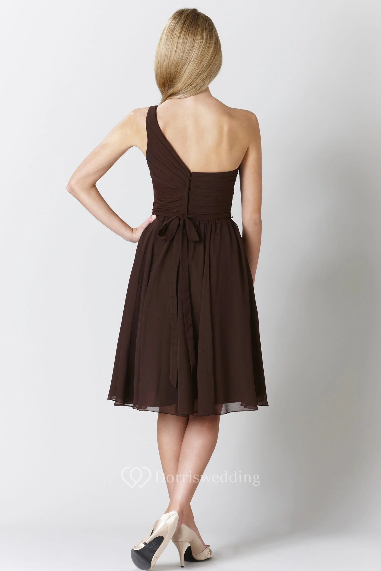 Knee-Length Criss-Cross Sleeveless One-Shoulder Chiffon Bridesmaid Dress