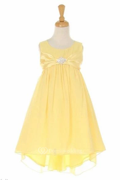 Knee-Length Empire Bowed Broach Chiffon&Satin Flower Girl Dress