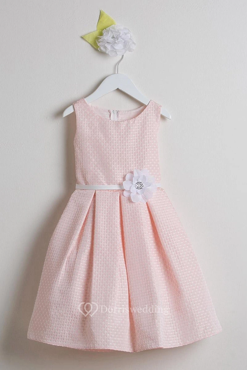 Knee-Length Floral Floral Sequins&Satin Flower Girl Dress With Sash