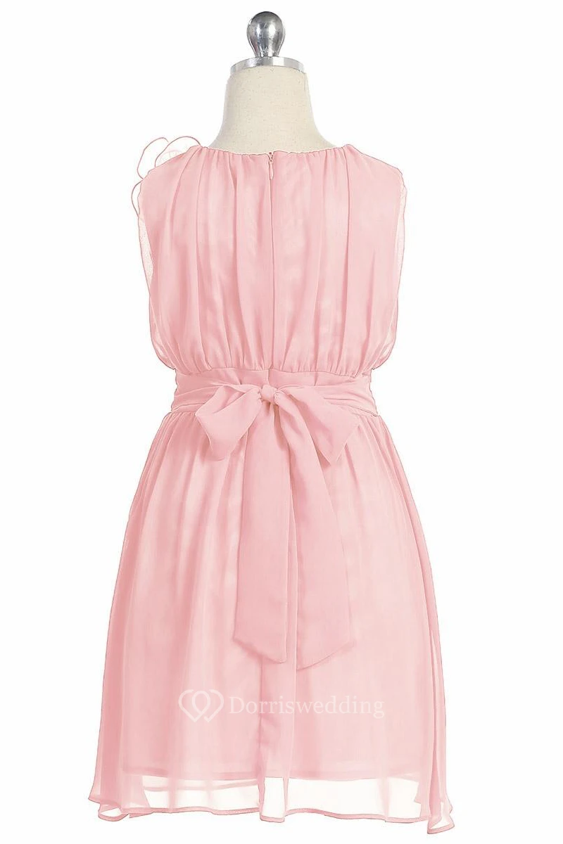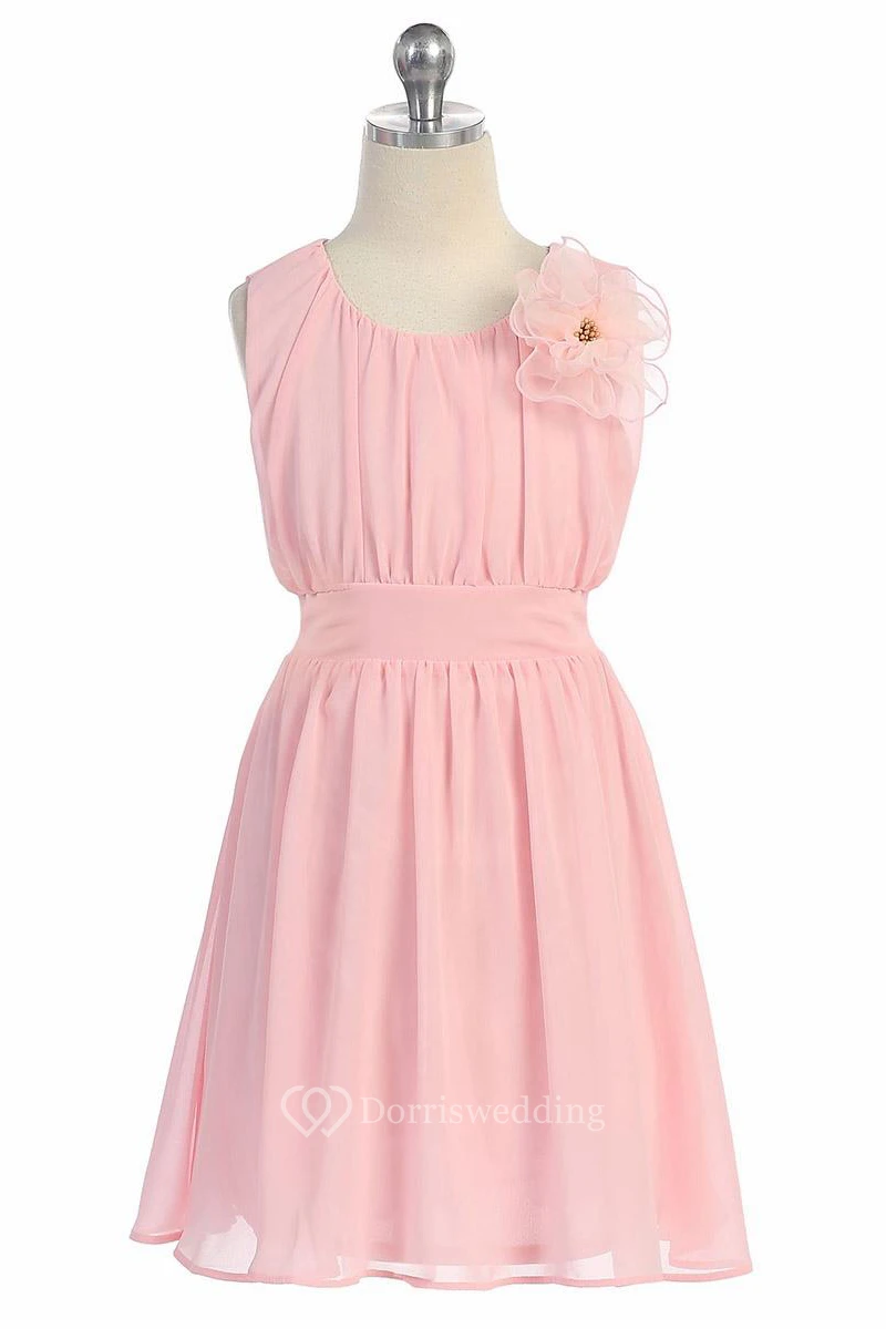Knee-Length Floral Pleated Chiffon&Lace Flower Girl Dress