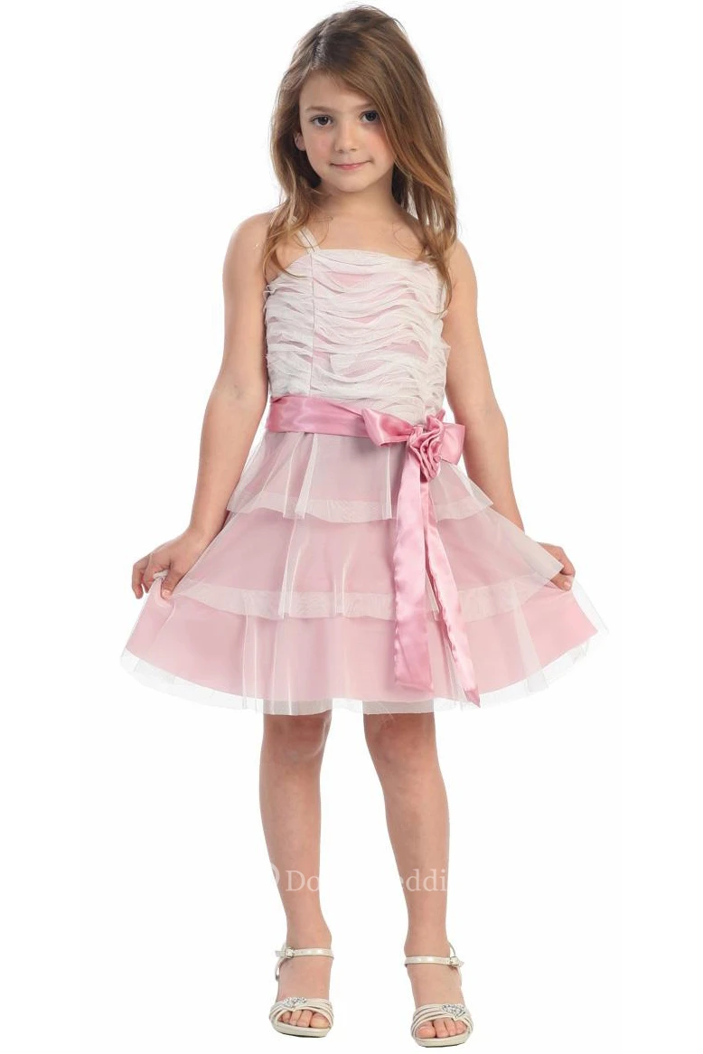 Knee-Length Floral Tiered Flower Girl Dress With Embroidery