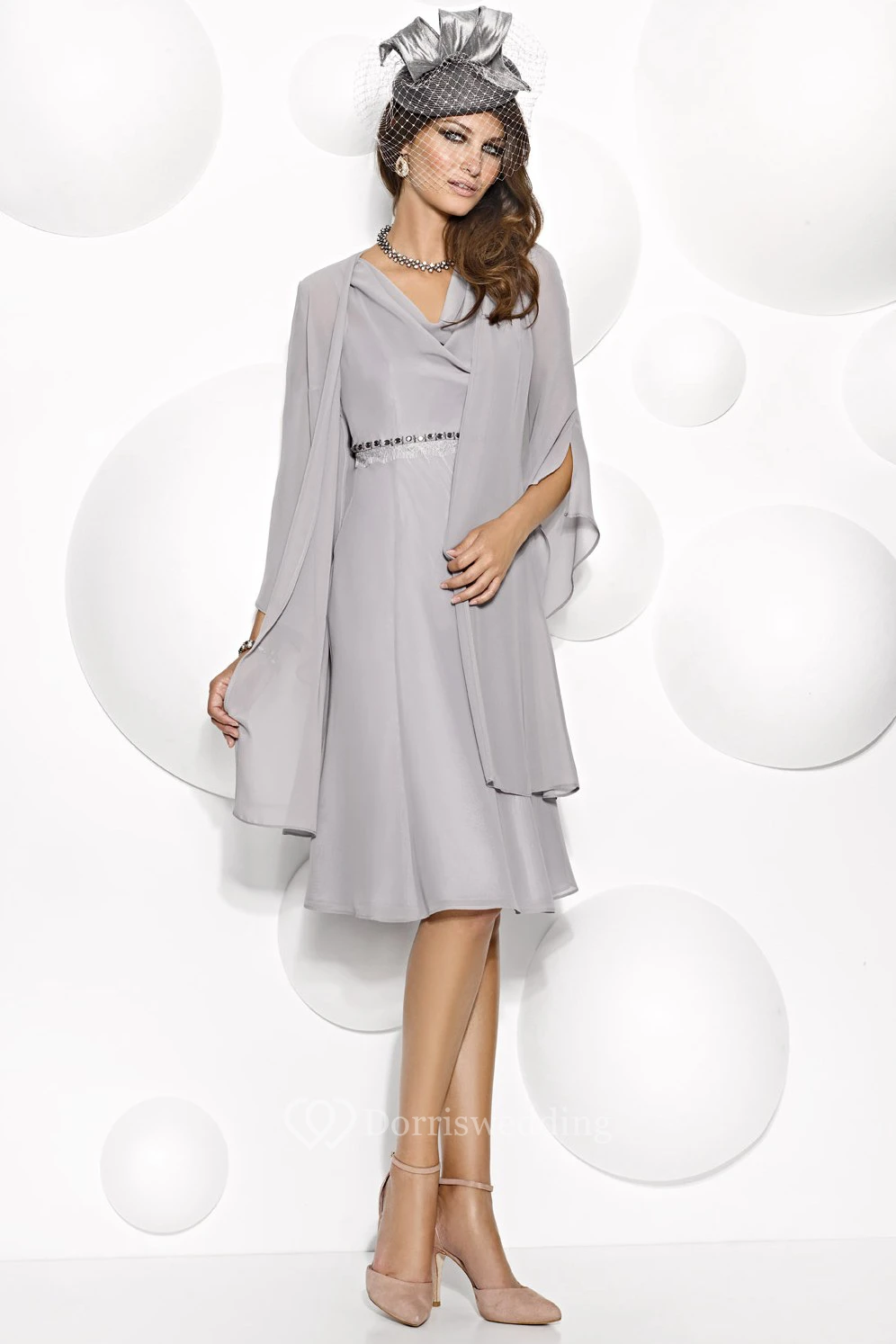 Knee-Length Half Sleeve V-Neck Jeweled Chiffon Mother Of The Bride Dress