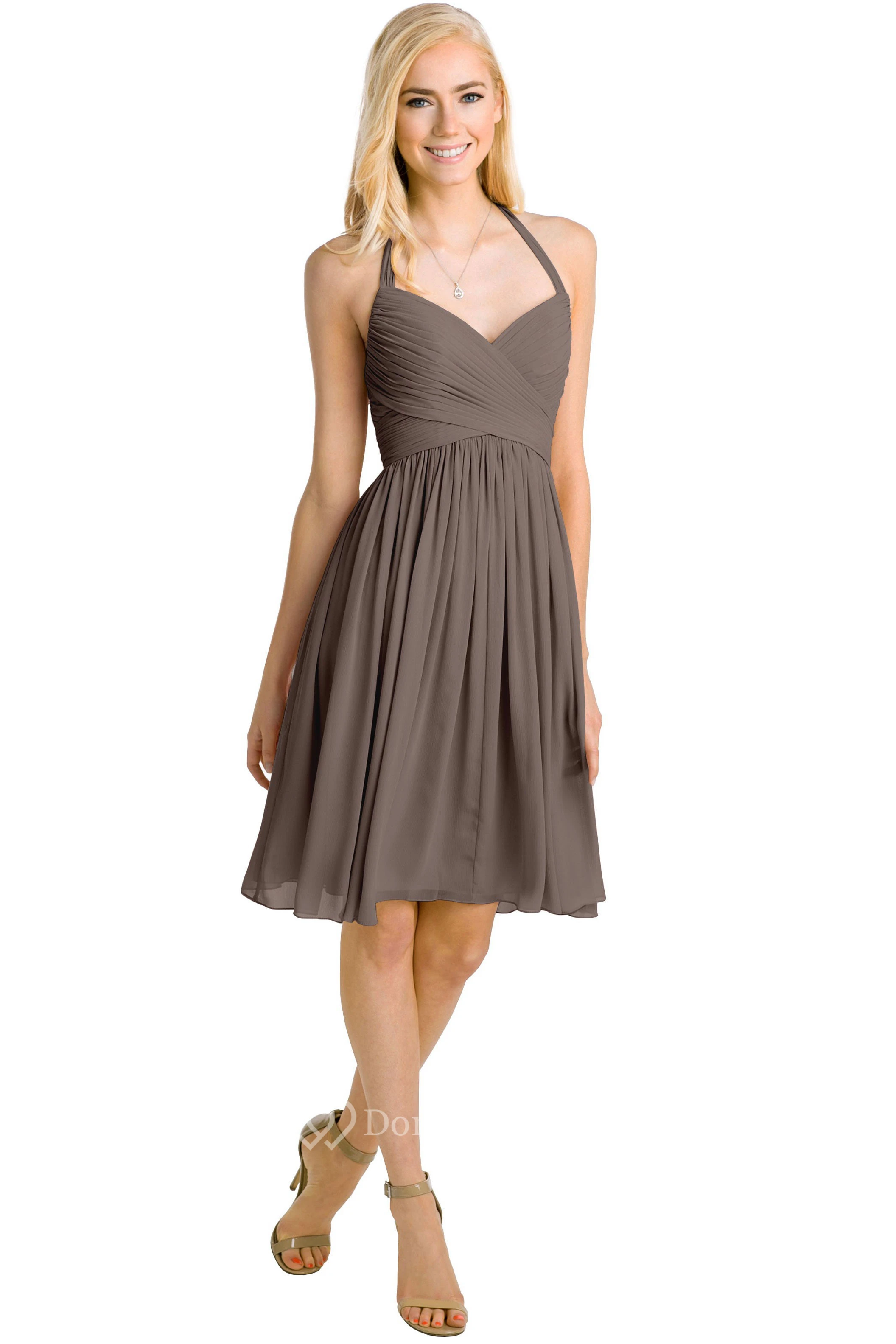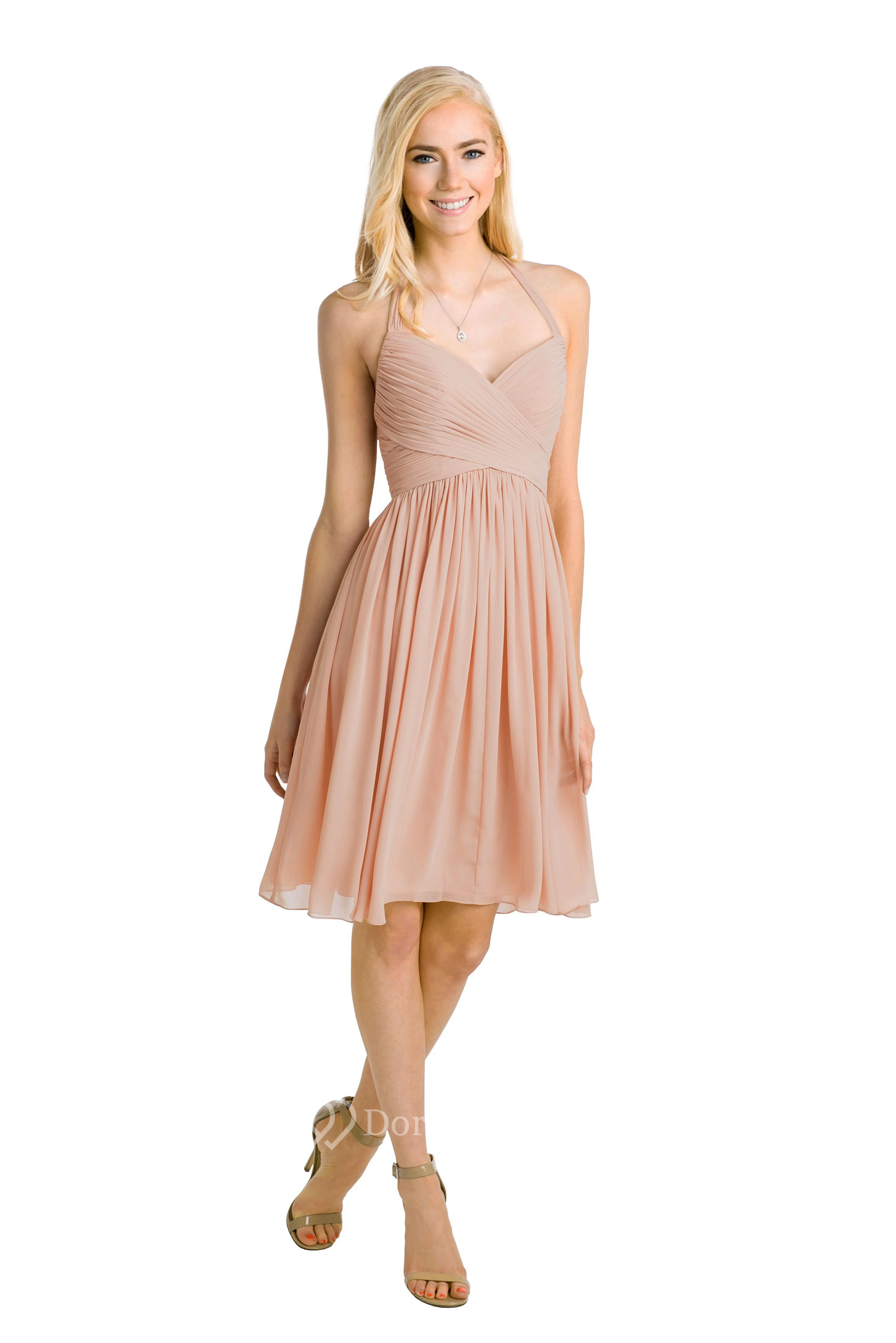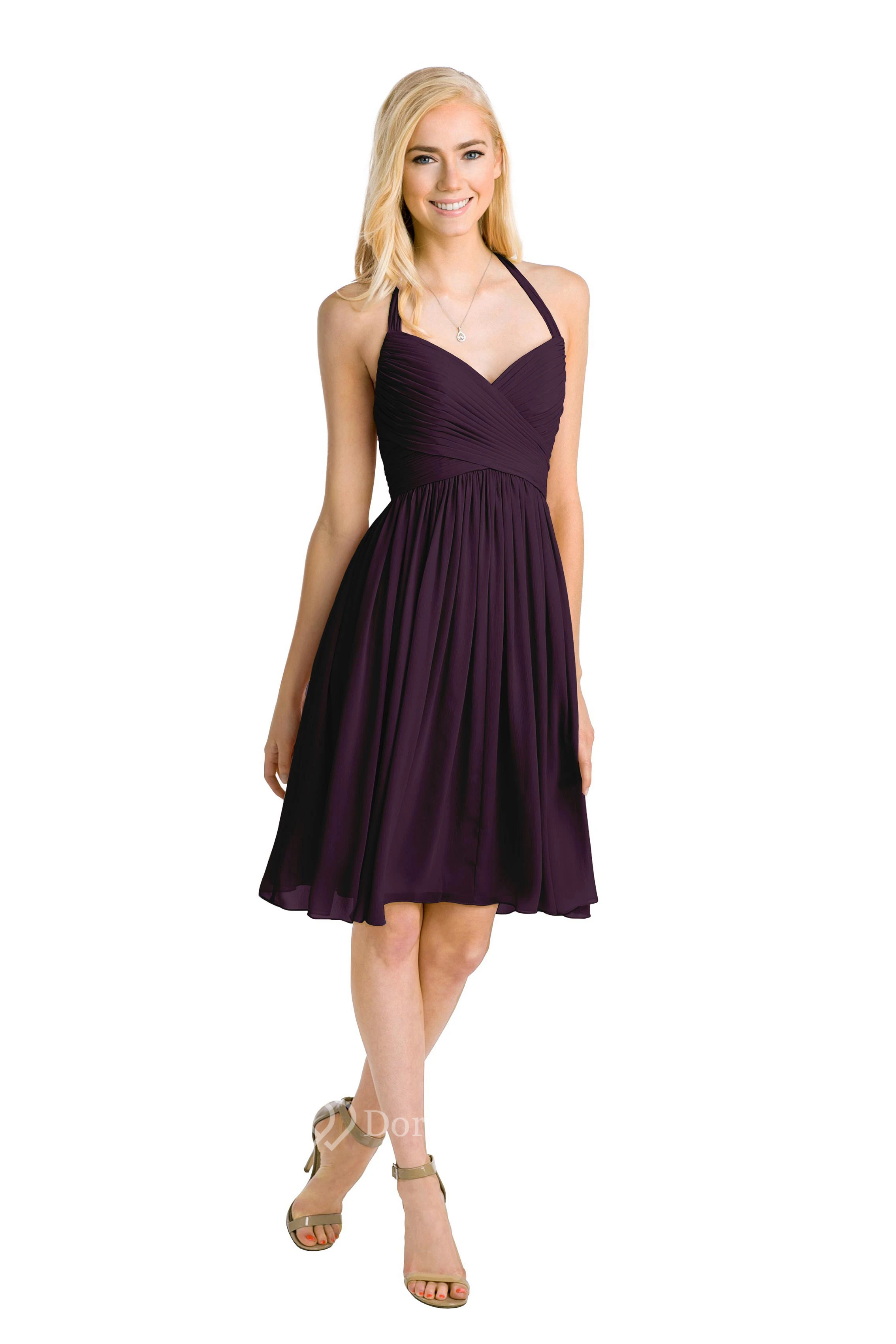 Knee-Length Halter Sleeveless Criss-Cross Chiffon Muti-Color Convertible Bridesmaid Dress