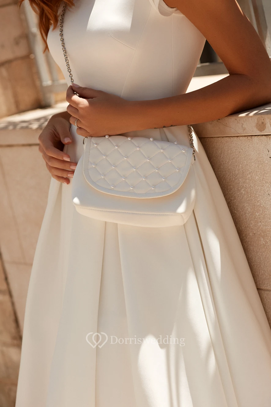 Knee-length Informal Layered Cap Sleeve Cute Satin Wedding Dress With Deep V-back
