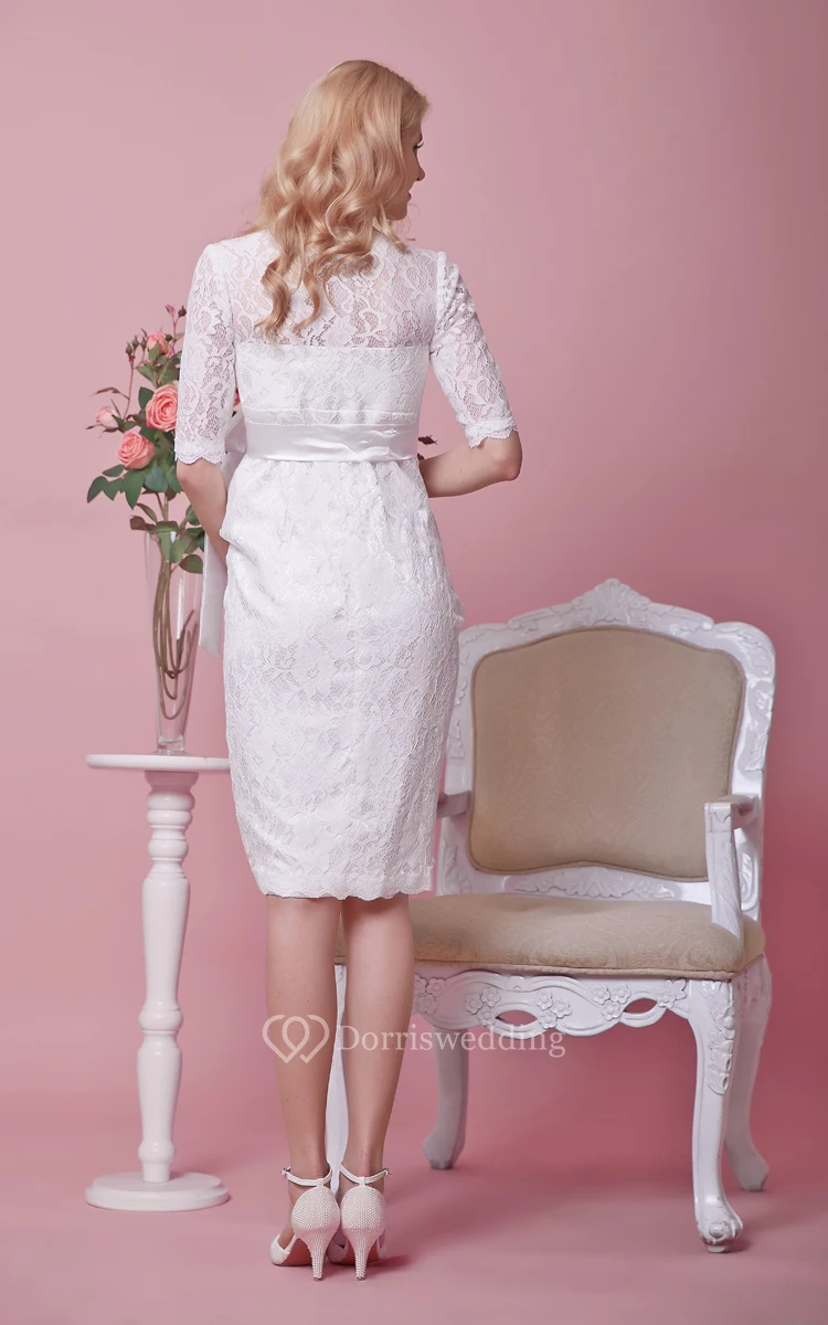 Knee Length Lace Half Sleeve Dress With Satin Bow Sash