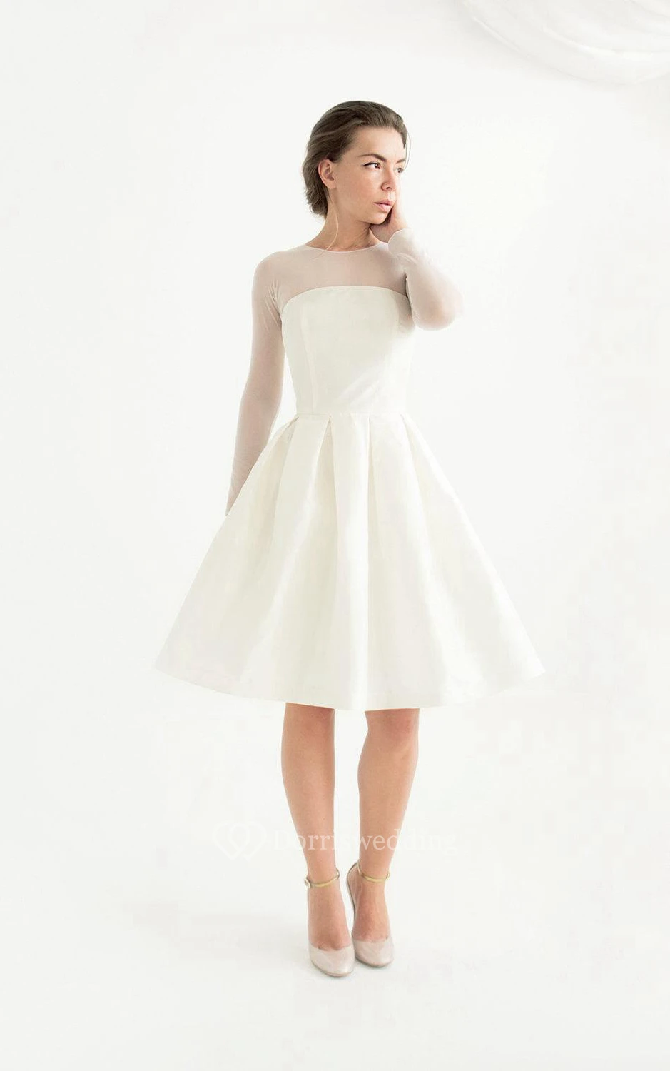 Knee-Length Long Sleeve Taffeta Wedding Dress