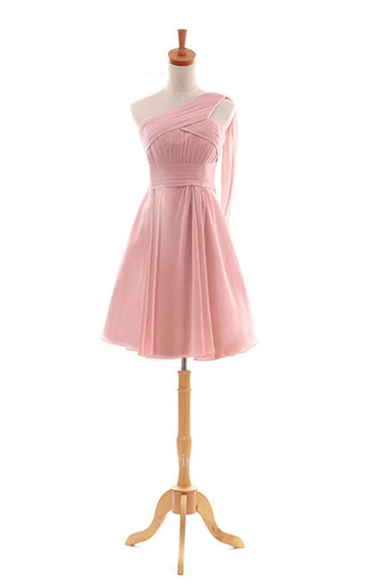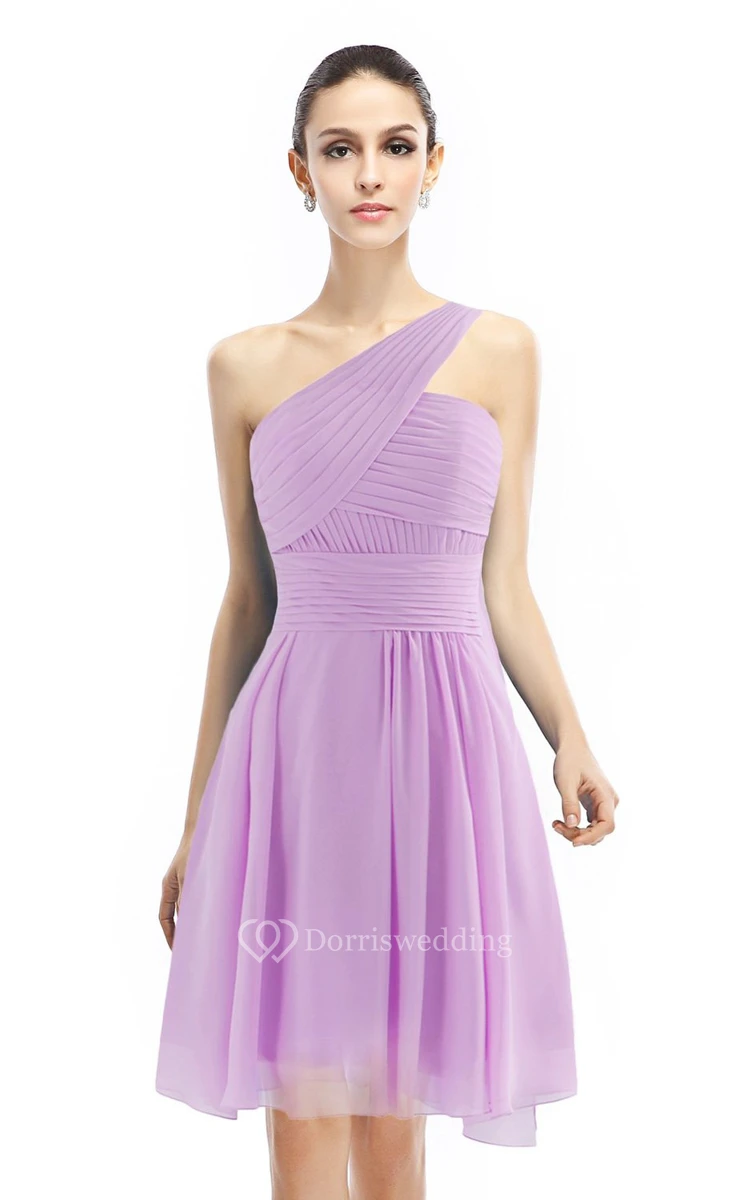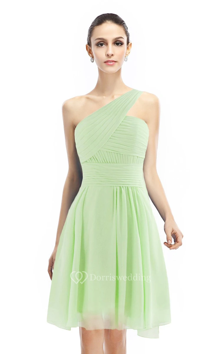 Knee-length One-shoulder Ruched A-line Dress With Band