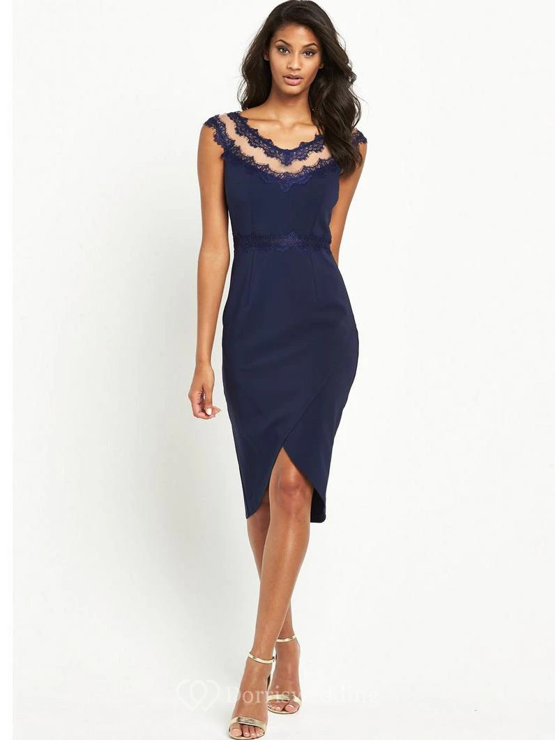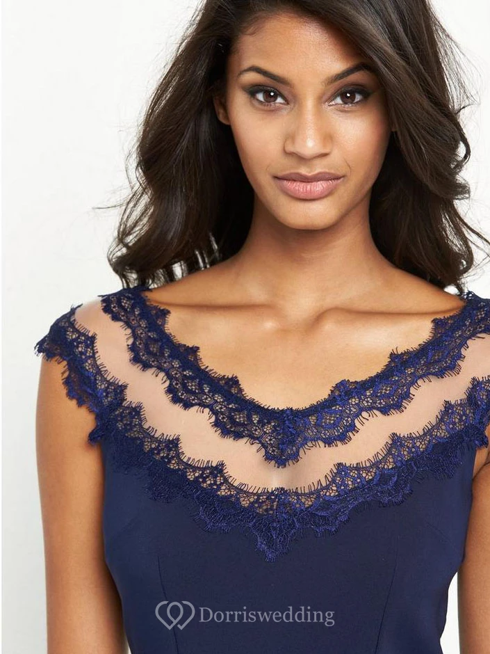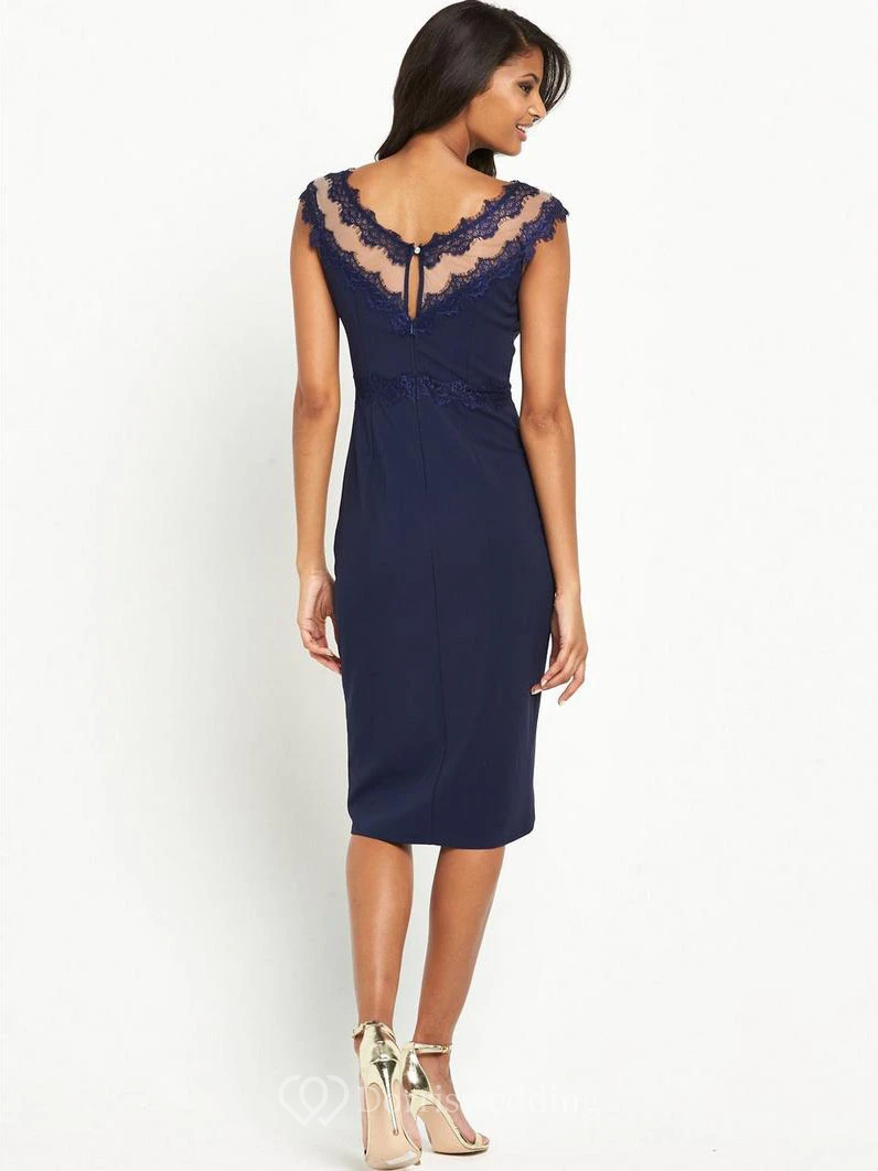Knee-Length Pencil Cap Sleeve V-Neck Appliqued Chiffon Bridesmaid Dress
