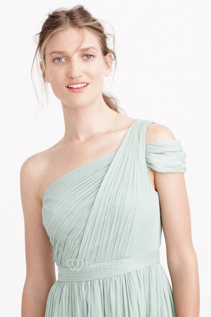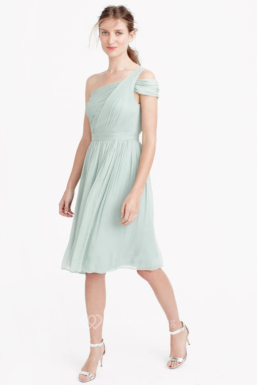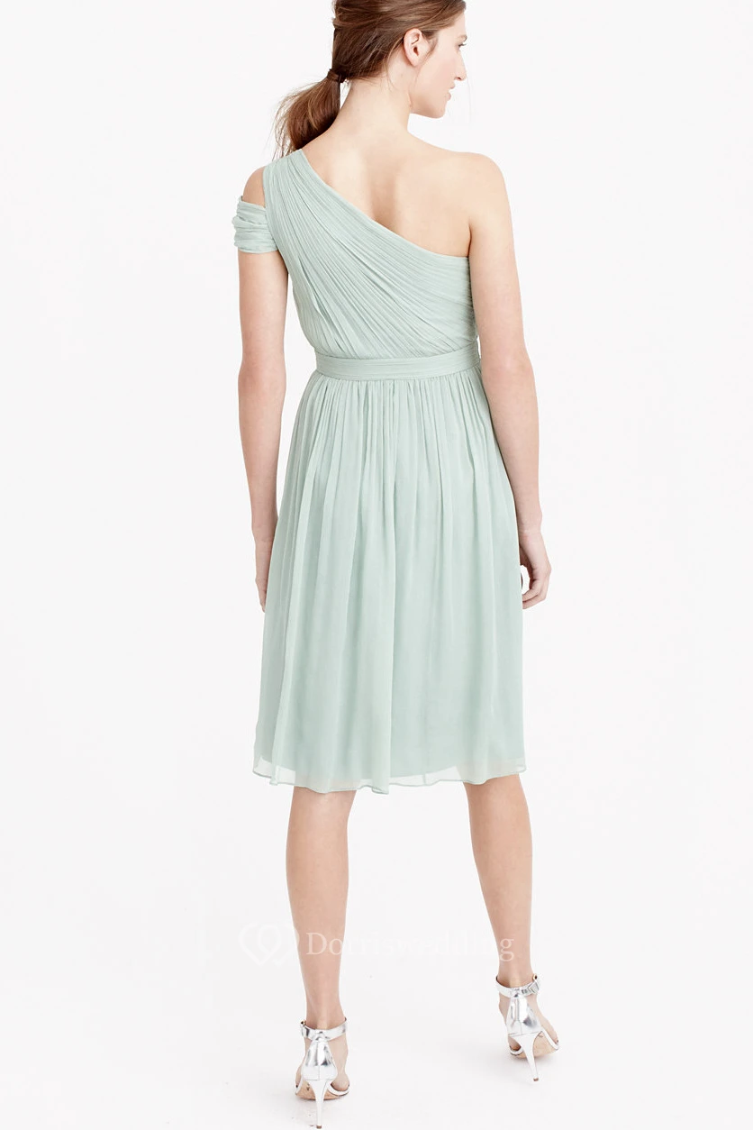 Knee-Length Ruched One-Shoulder Sleeveless Chiffon Bridesmaid Dress With Straps