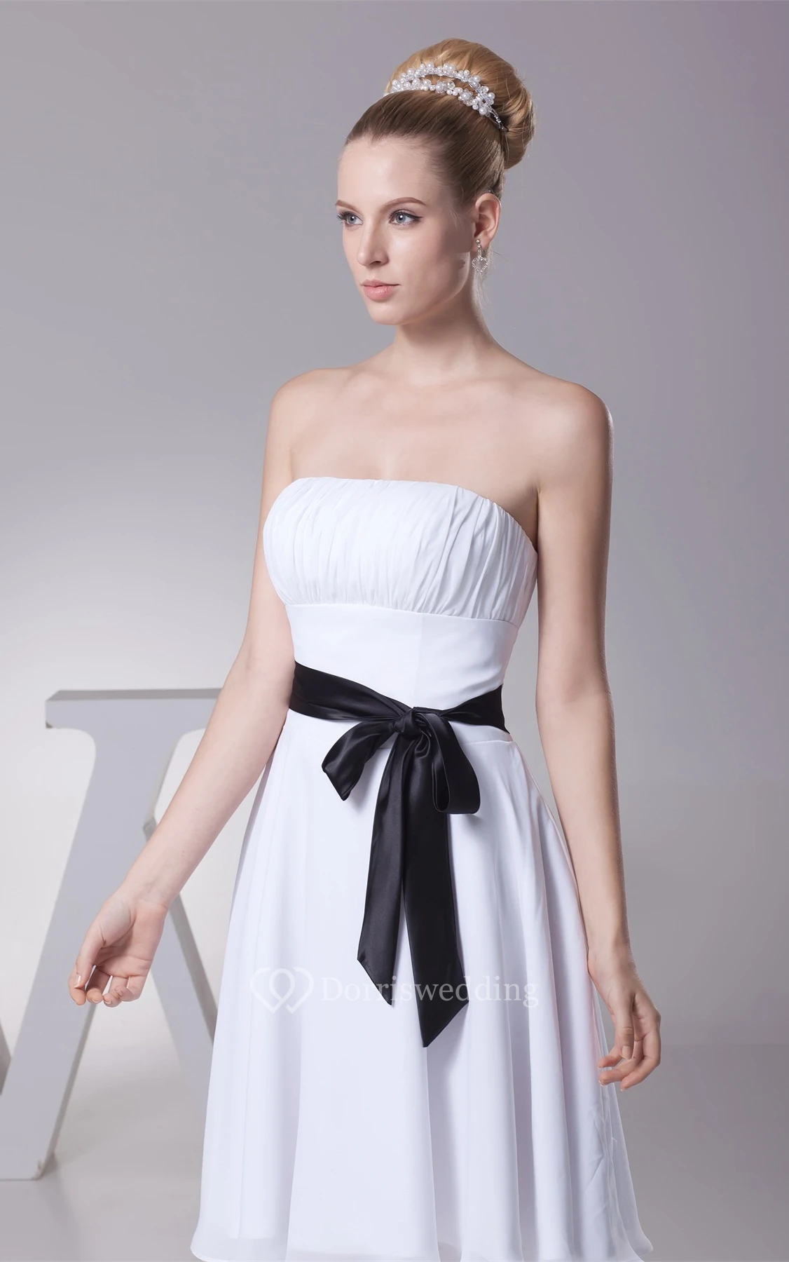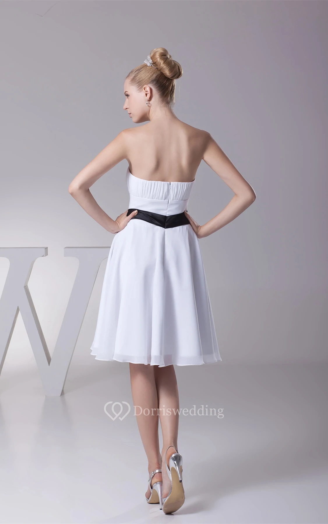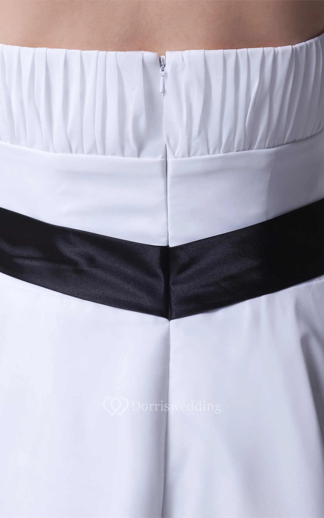Knee Length Ruched Sleeveless A-Line Gown With Bowed Sash and Zipper Back