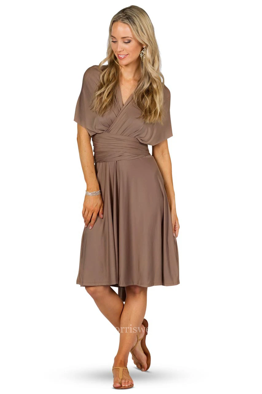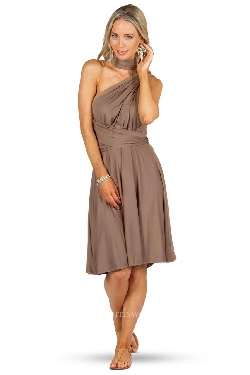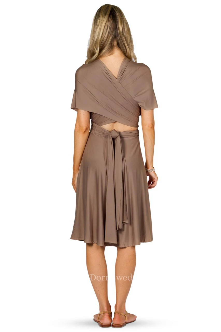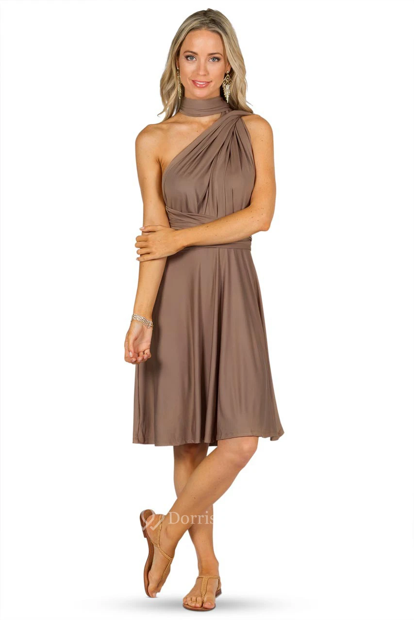 Knee-Length Ruched Sleeveless Halter Chiffon Convertible Bridesmaid Dress With Straps