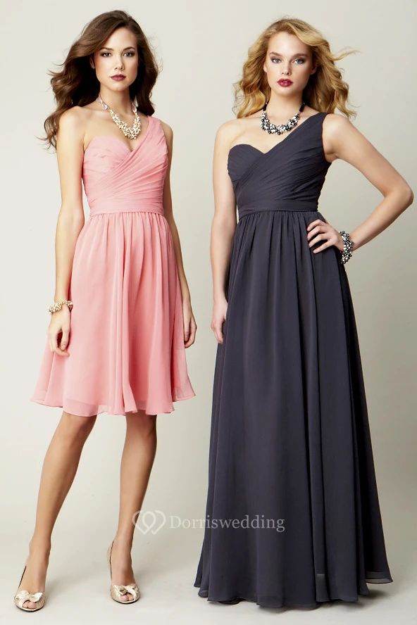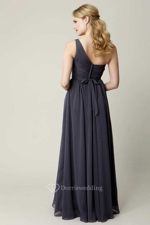 Knee-Length Ruched Sleeveless One-Shoulder Chiffon Bridesmaid Dress With Bow