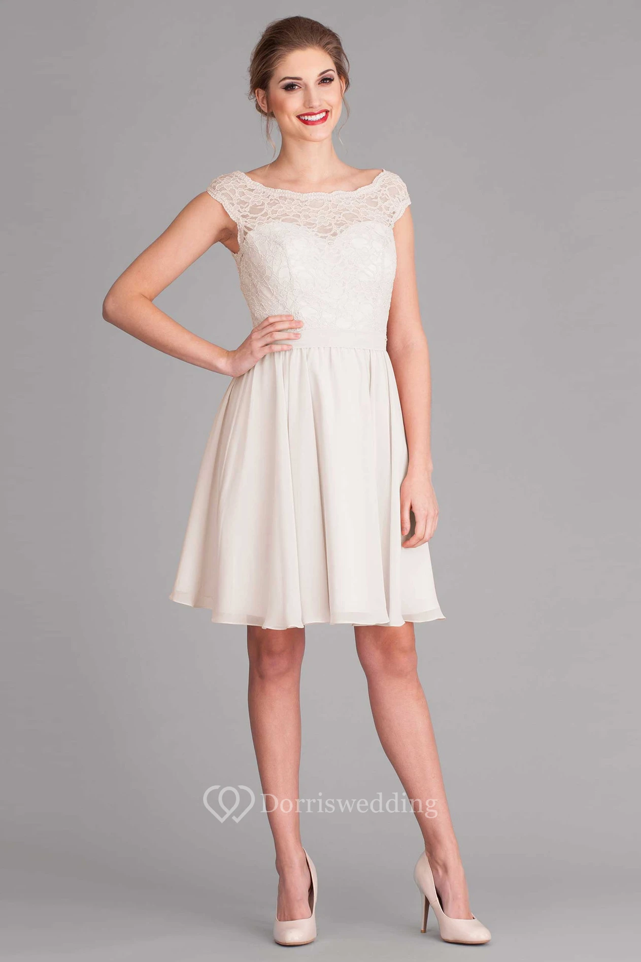 Knee-Length Scoop Cap-Sleeve Lace Wedding Dress