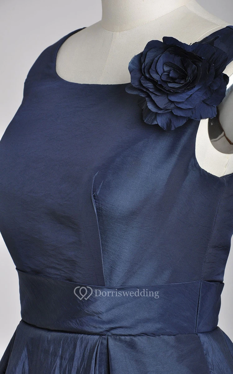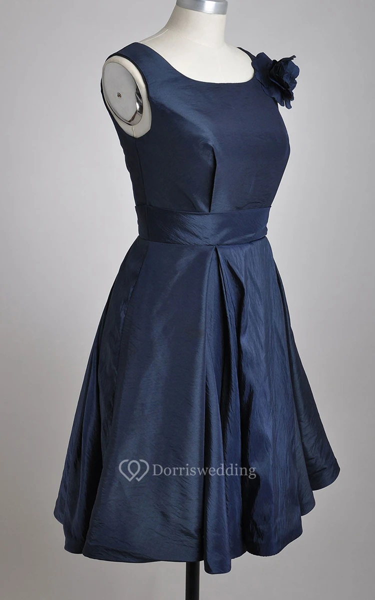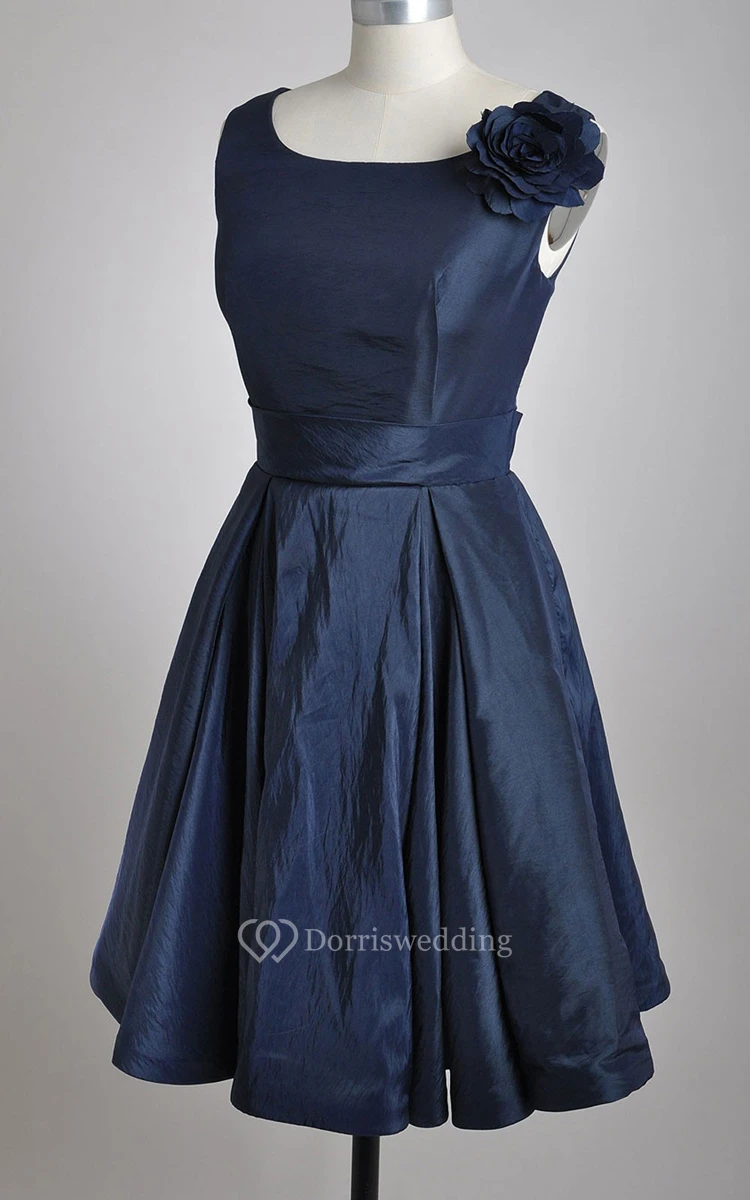 Knee-length Scooped A-line Satin Bridesmaid Dress With 3D Petal