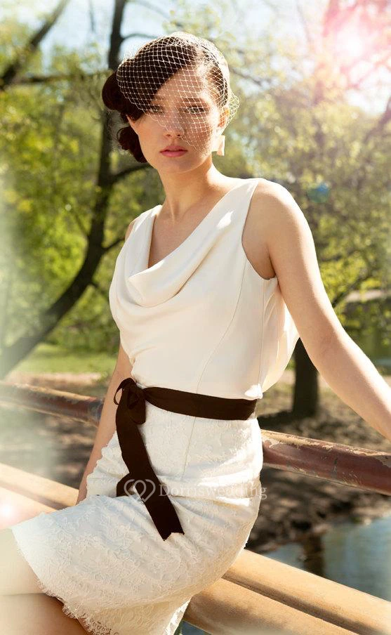 Knee Length Sheath Sleeveless Lace Dress With Bow Sash