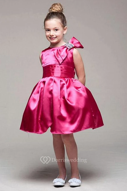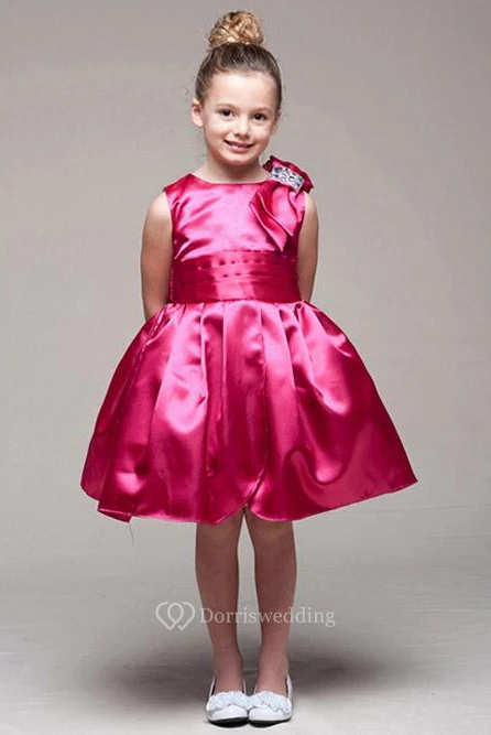 Knee-Length Sleeveless Bowed Satin Flower Girl Dress