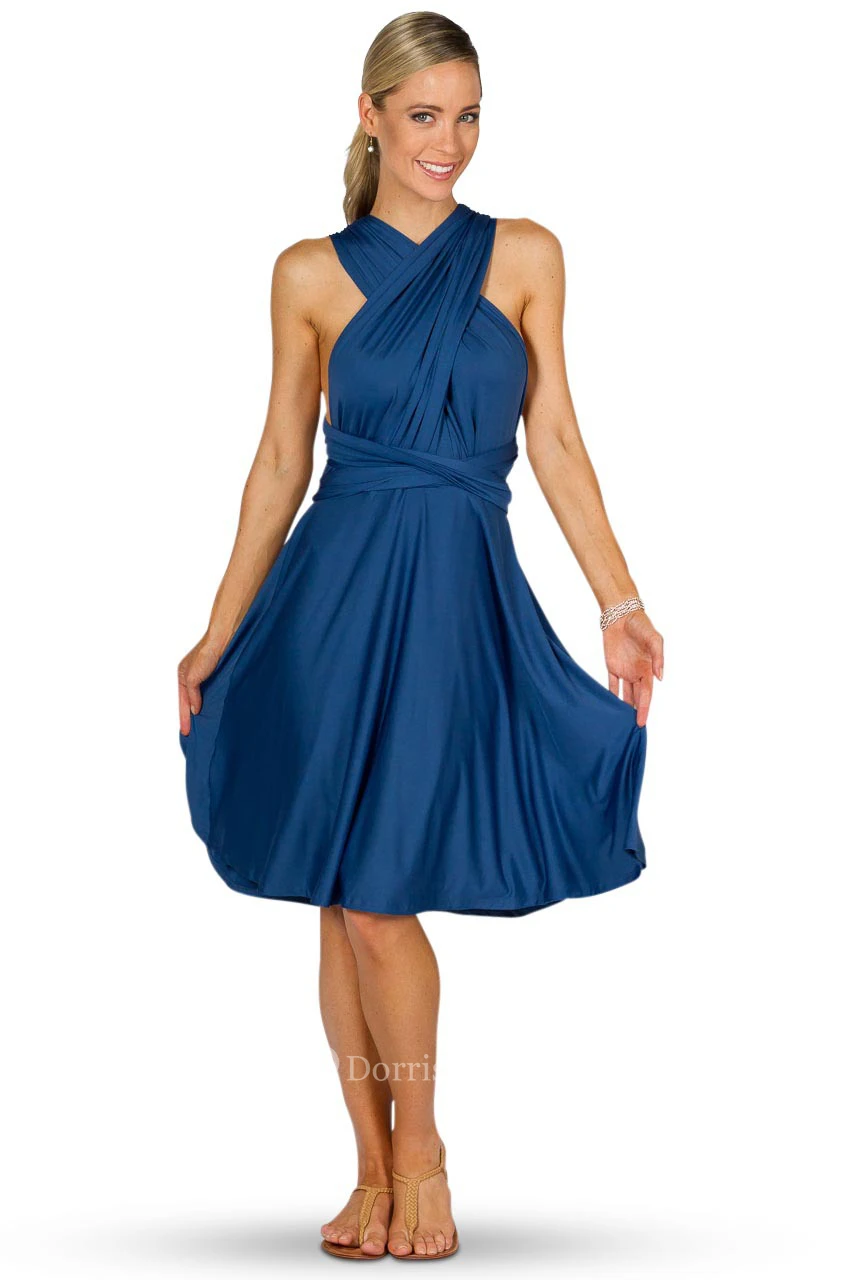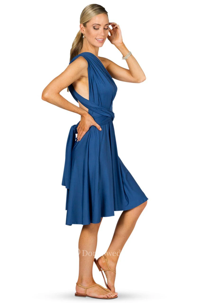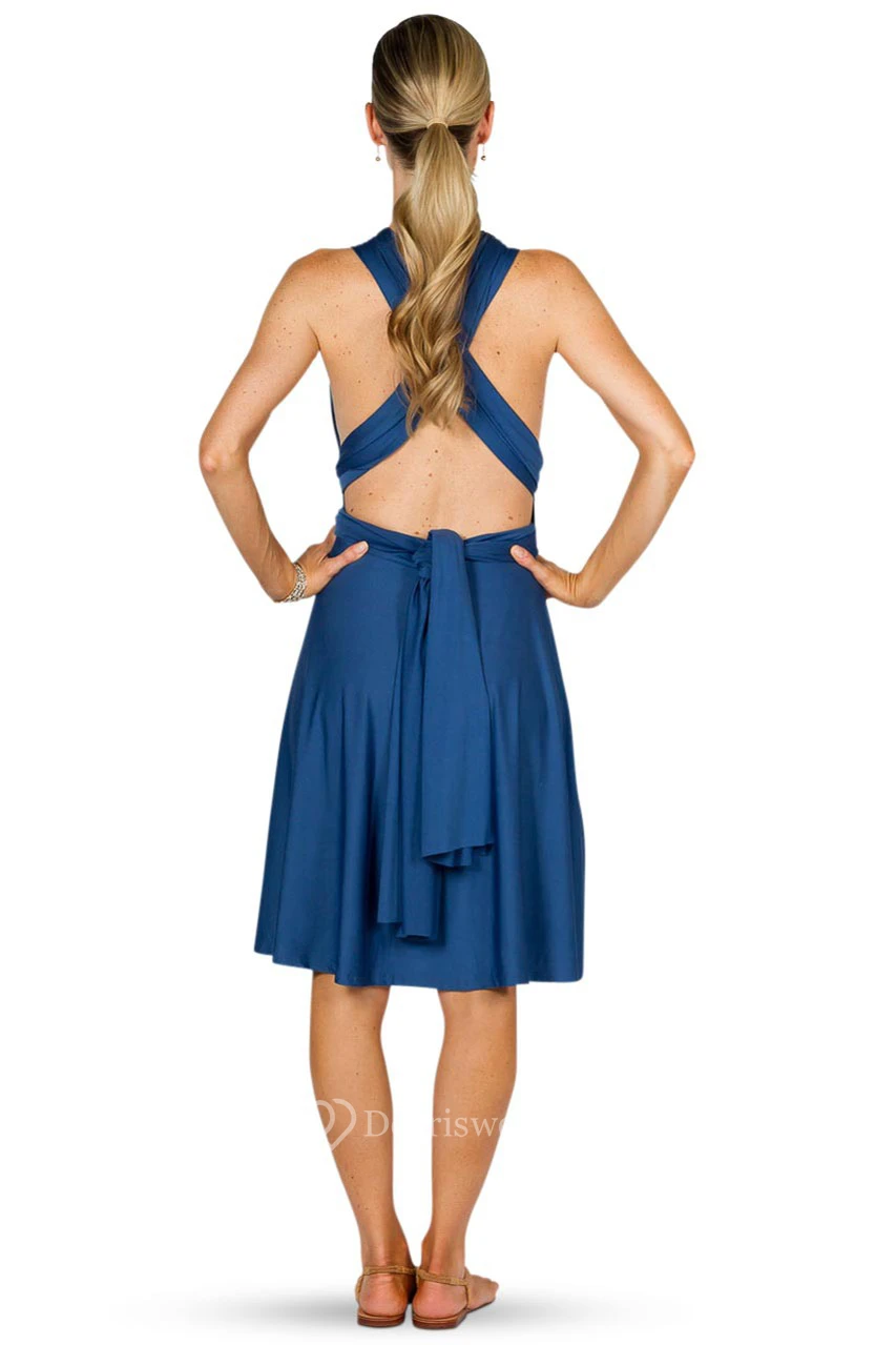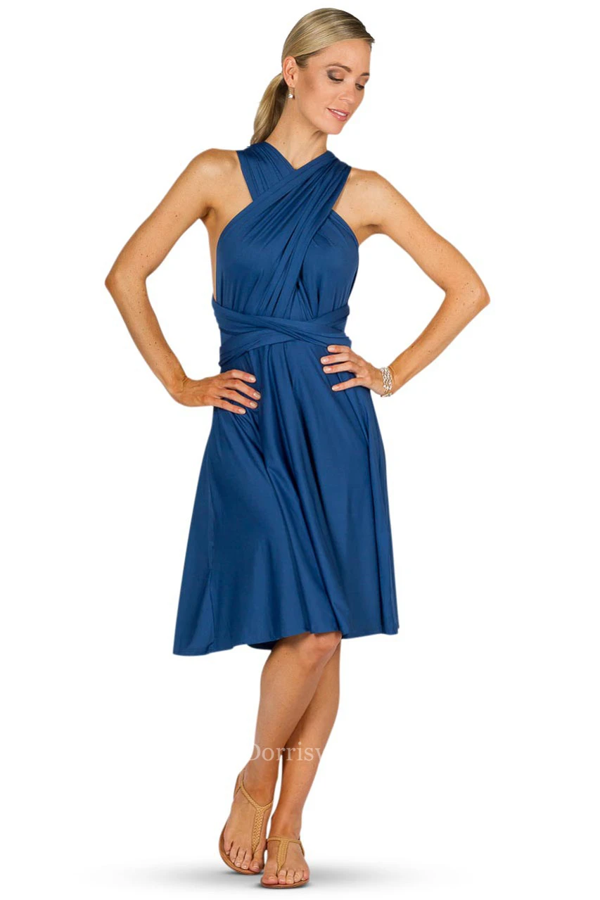 Knee-Length Sleeveless Chiffon Convertible Bridesmaid Dress With Ruching And Straps