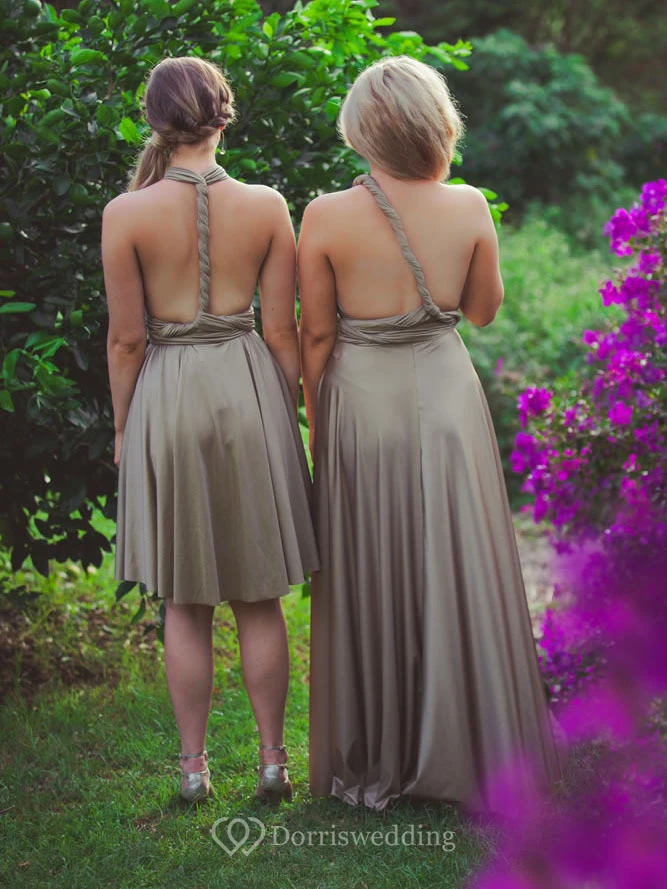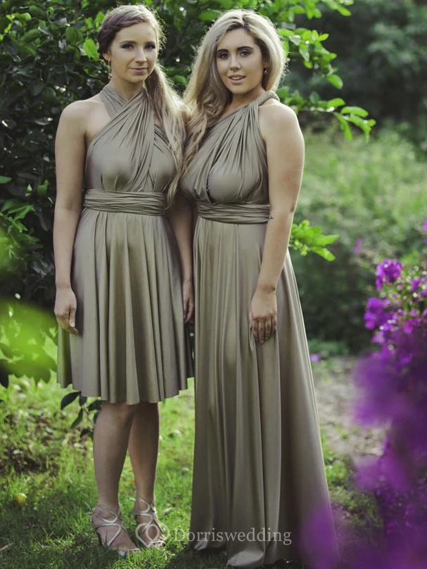 Knee-Length Sleeveless Halter Ruched Chiffon Bridesmaid Dress With Straps