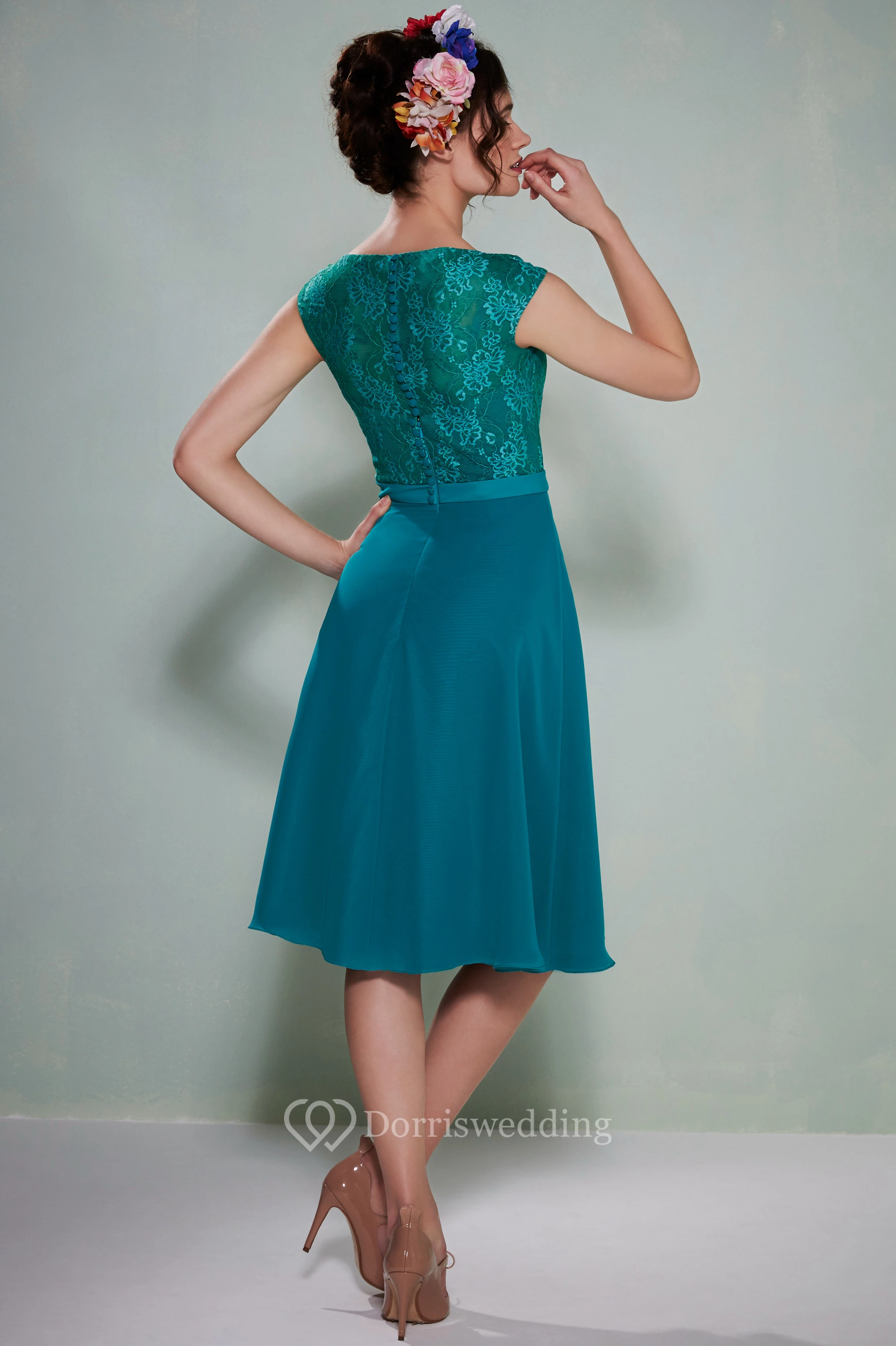 • Hemline/Train: Knee-length