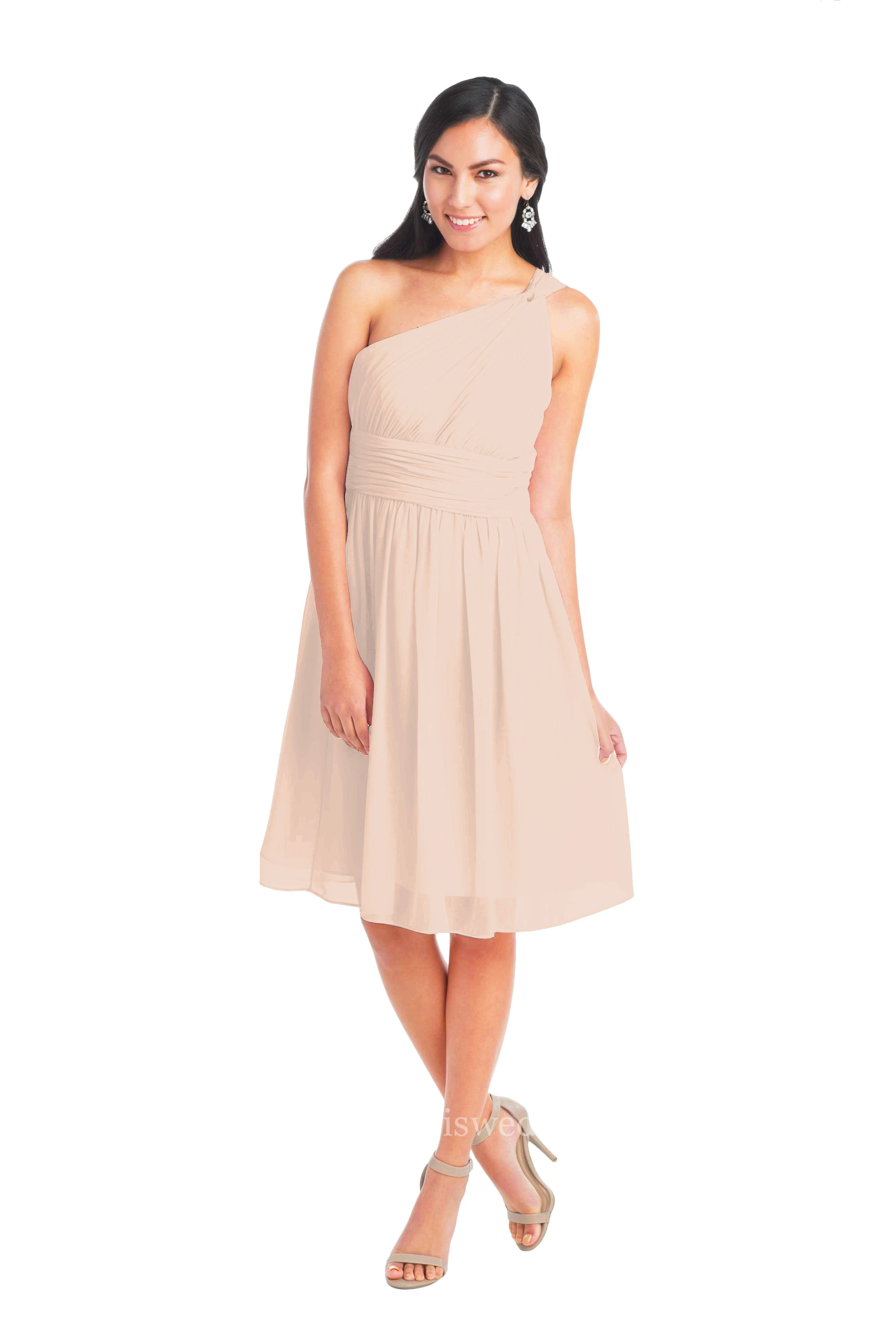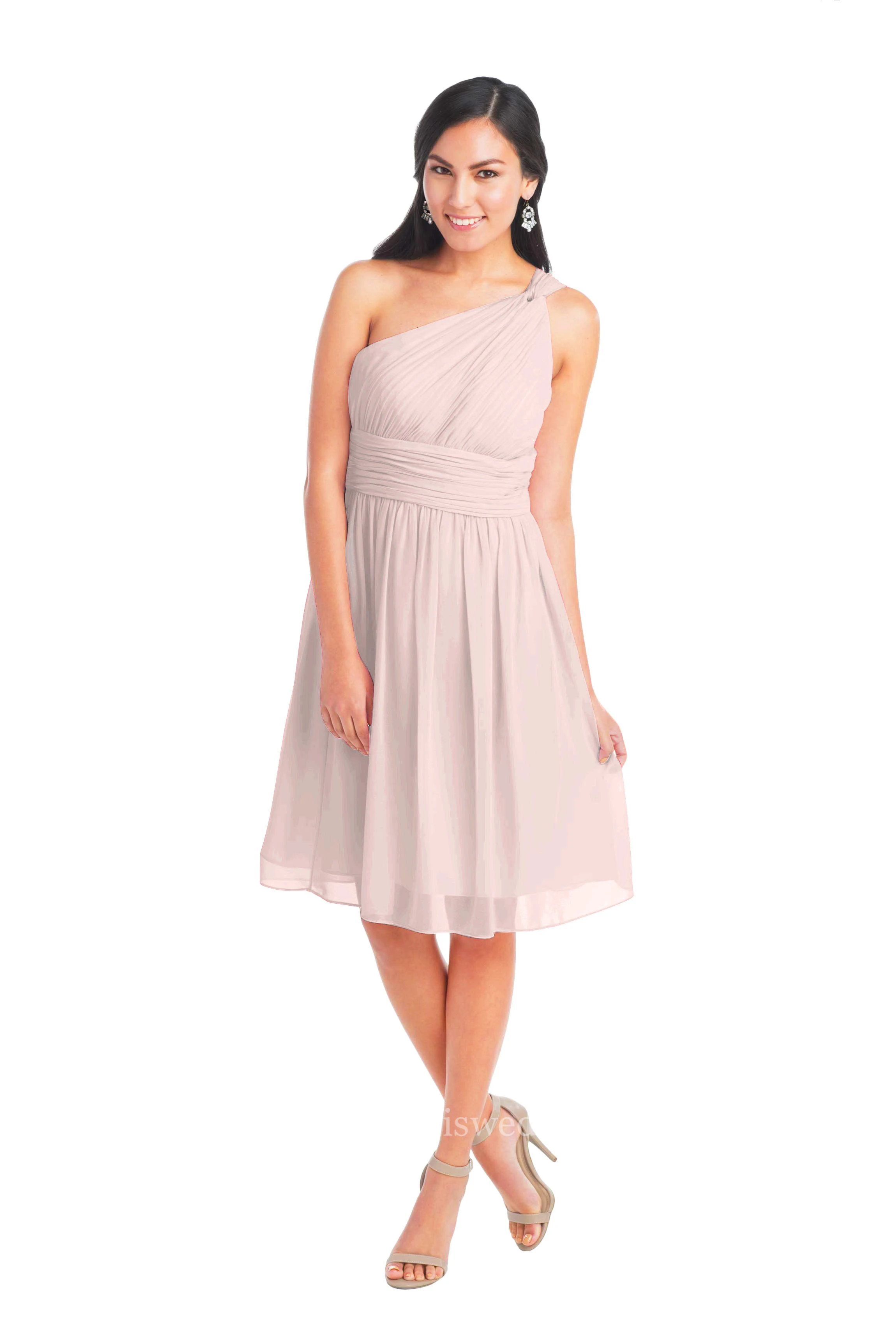 Knee-Length Sleeveless One-Shoulder Ruched Chiffon Muti-Color Convertible Bridesmaid Dress With Straps
