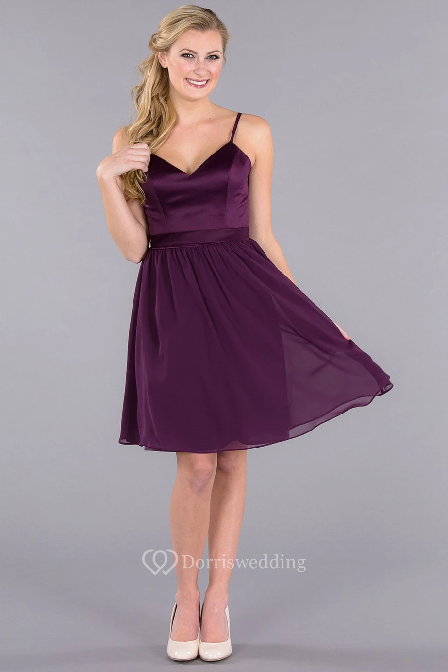 Knee-Length Sleeveless Ribboned Spaghetti Chiffon Bridesmaid Dress With Pleats