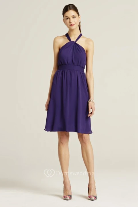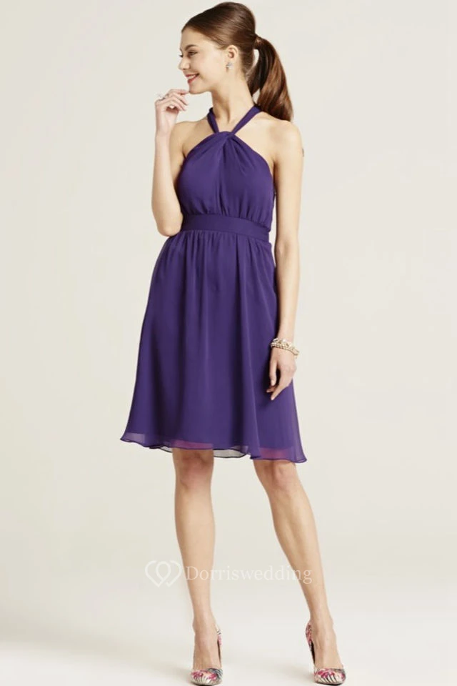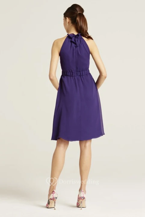 Knee-Length Sleeveless Ruched Halter Chiffon Bridesmaid Dress With Bow