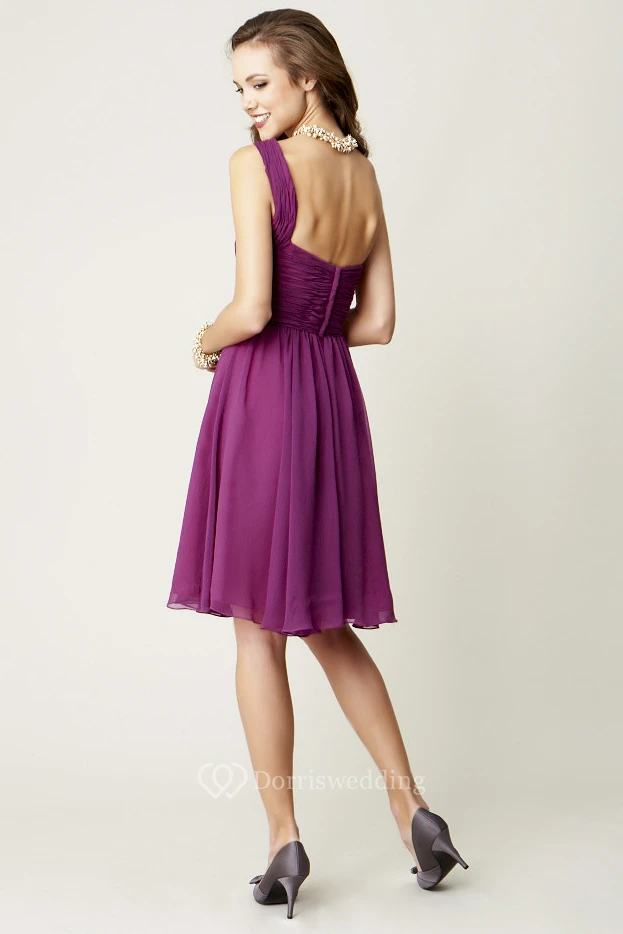 Knee-Length Sleeveless Ruched One-Shoulder Chiffon Bridesmaid Dress