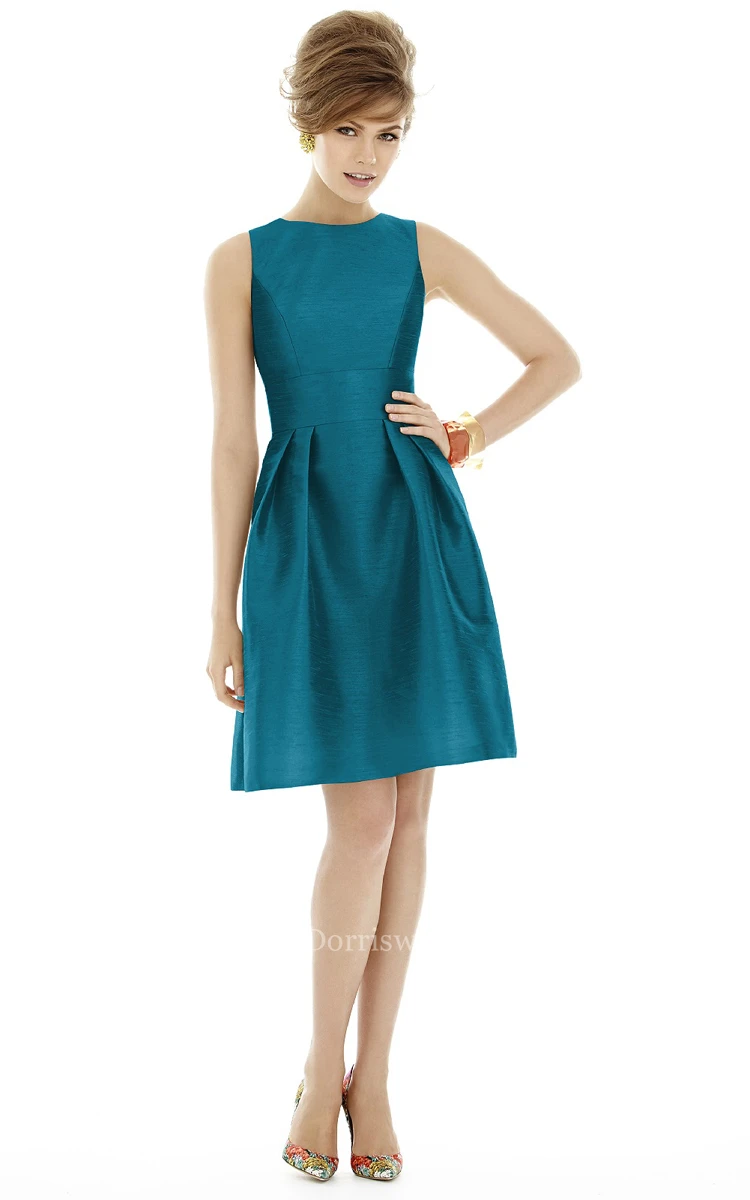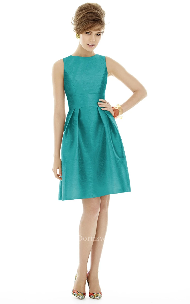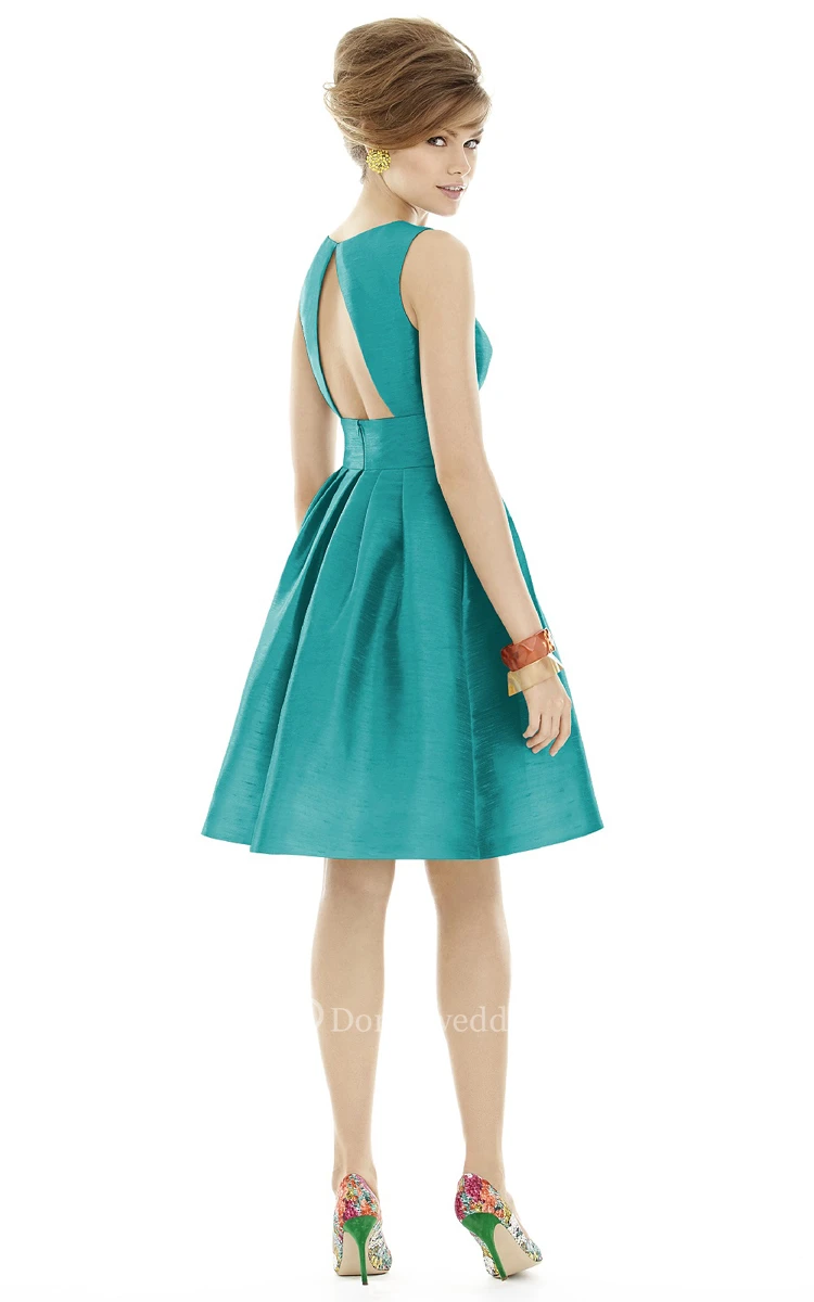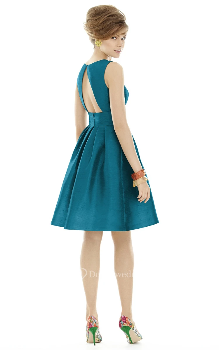 Knee-Length Sleeveless Satin Gown with High Neck and Keyhole Back