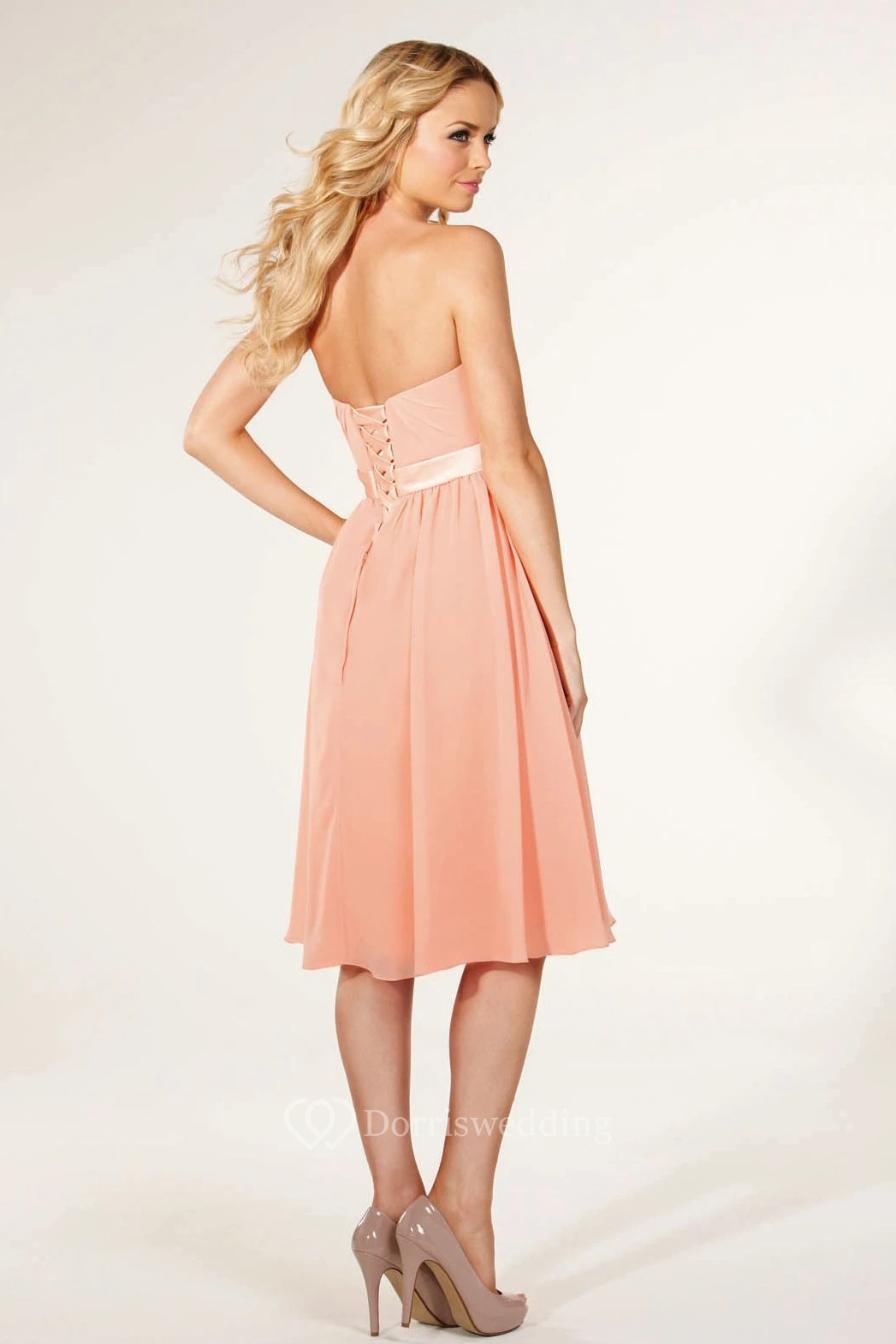 Knee-Length Strapless Floral Chiffon Bridesmaid Dress With Ruching And Lace-Up