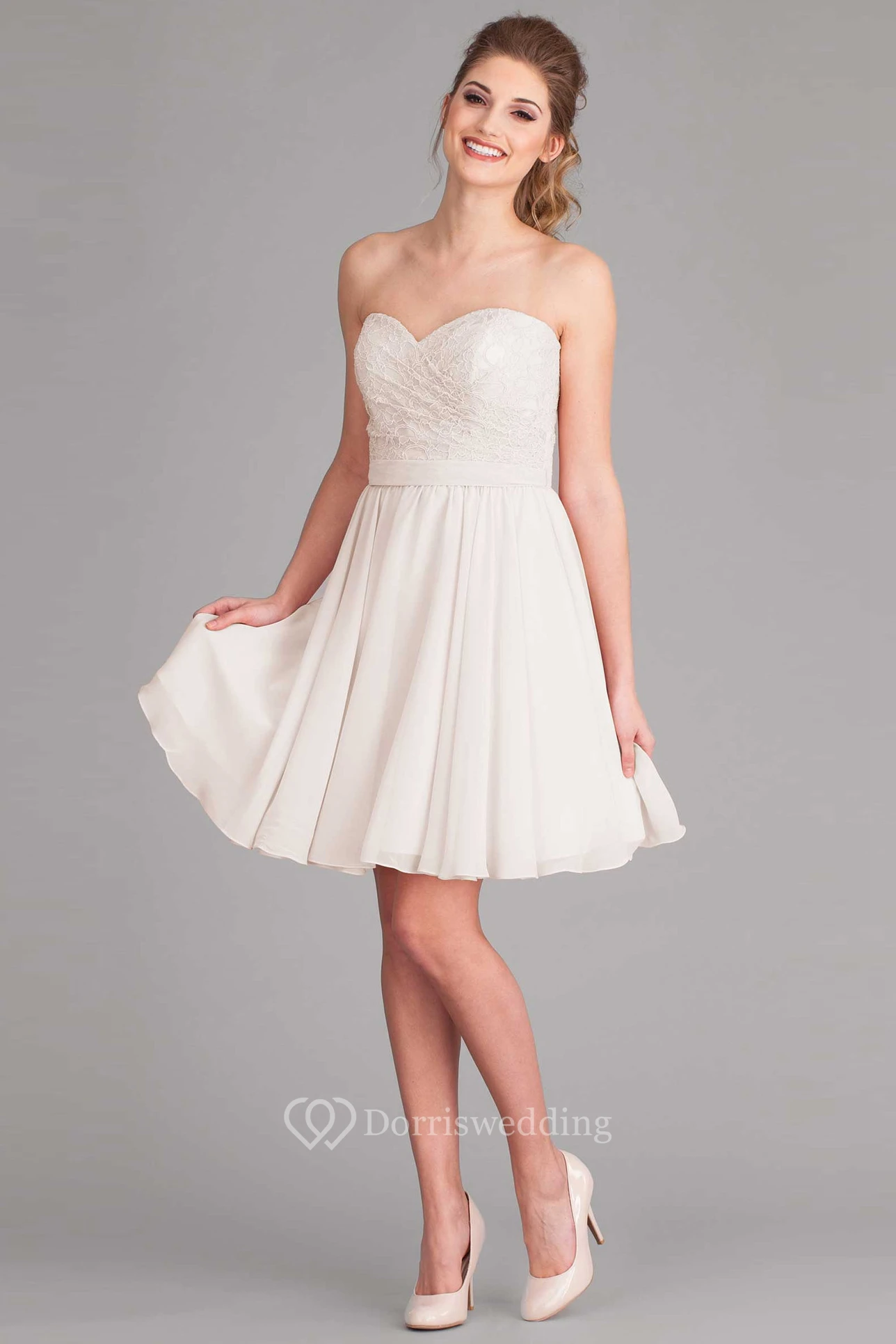 Knee-Length Sweetheart Lace Sleeveless Chiffon Wedding Dress