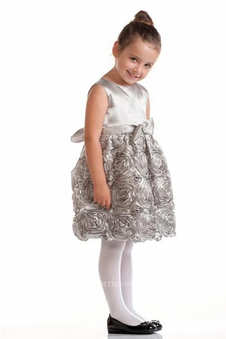 Knee-Length Tiered Bowed Satin Flower Girl Dress