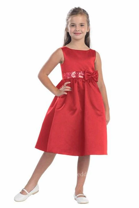 Knee-Length Tiered Bowed Sequins&Satin Flower Girl Dress With Sash